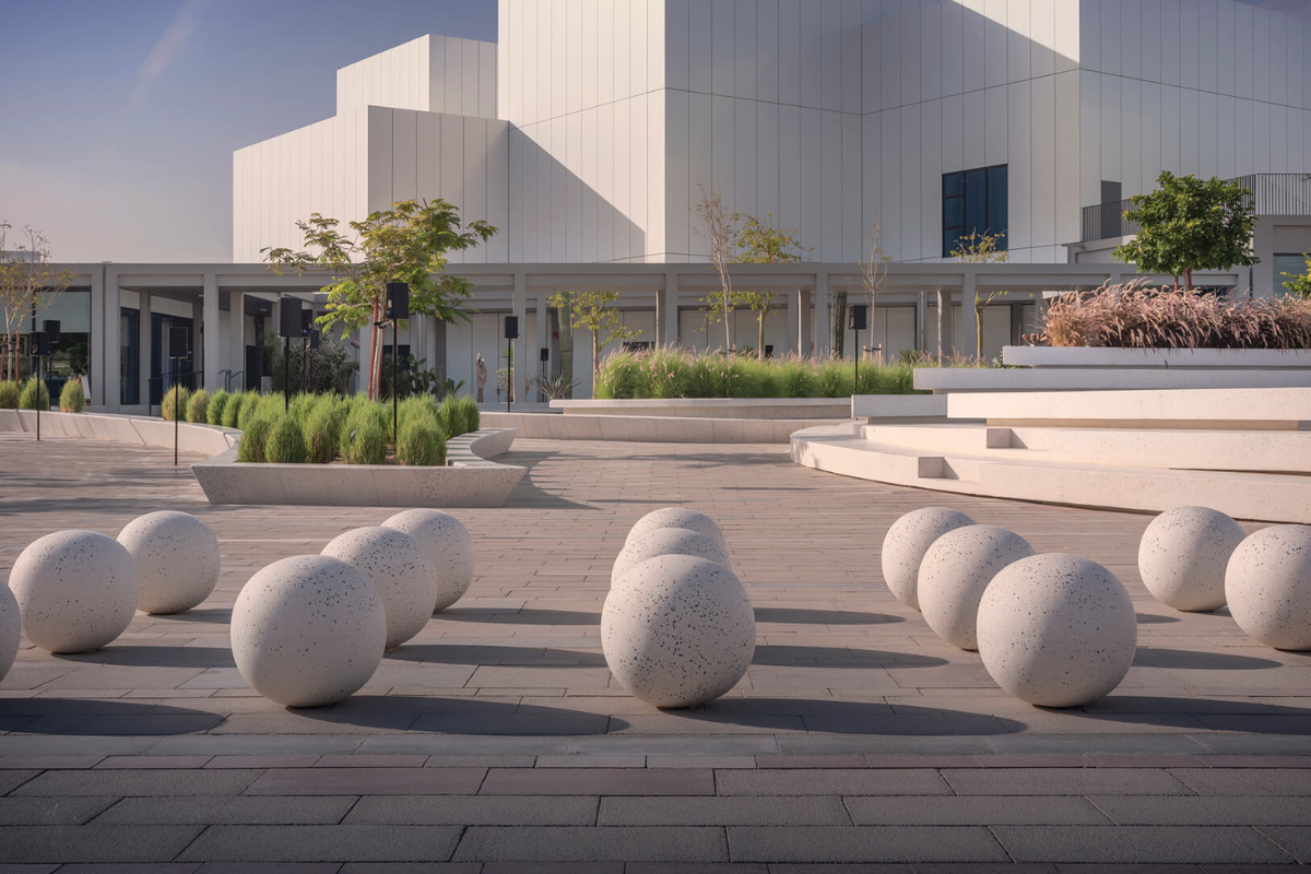 The Jaddaf Waterfront Sculpture Park is the first outdoor sculpture and art park in the UAE. It is next to the Jameel Arts Center and includes outdoor installations made by the center as well as outstanding artwork on loan from national and international institutions. The park is intended to be a vibrant outdoor gallery space that encourages community interaction, flows smoothly from the open walkway around the corniche, and includes zones of fixed furniture with special tables for board games or chess, as well as an area designated for food trucks where temporary vendor stalls can be set up. The 200-seat amphitheater, which hosts performances, talks, and movie screenings, is a key element of the park.