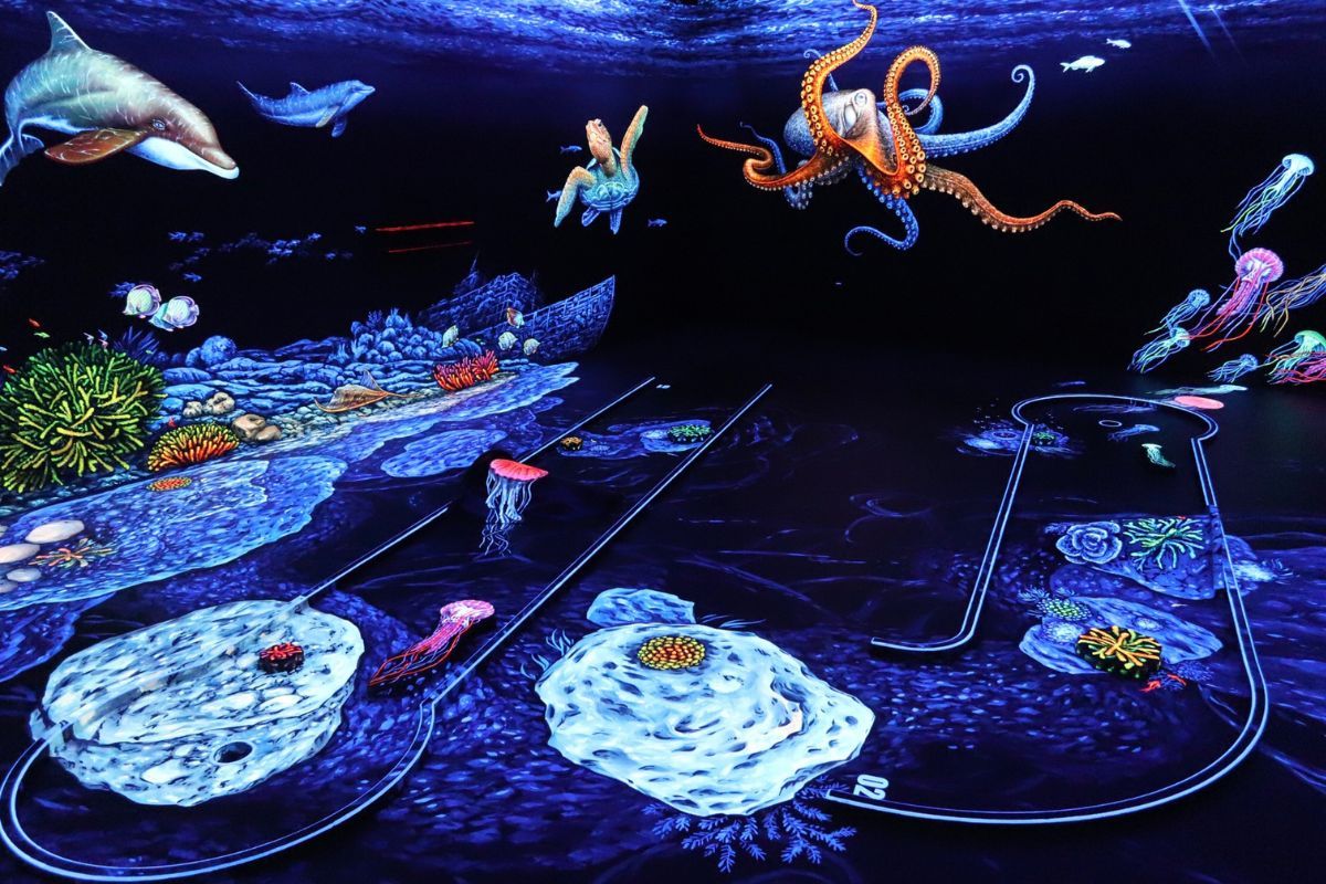 Enjoy a unique game of minigolf with the world’s largest blacklight panorama! Every inch of this spot, the walls, ceilings, and floors, was hand-painted by the best 3D artists and made to transport you to a whole new world. You will be given 3D glasses when you enter, which only adds to the experience! You could be in the desert with the camels, underwater with all the marine life, or up in space hanging with the astronauts. For 110 AED for people above 13 and 90 AED for children aged 5-12, you can play minigolf in a completely new way, whether it’s for school trips, birthdays, or simply team building.
