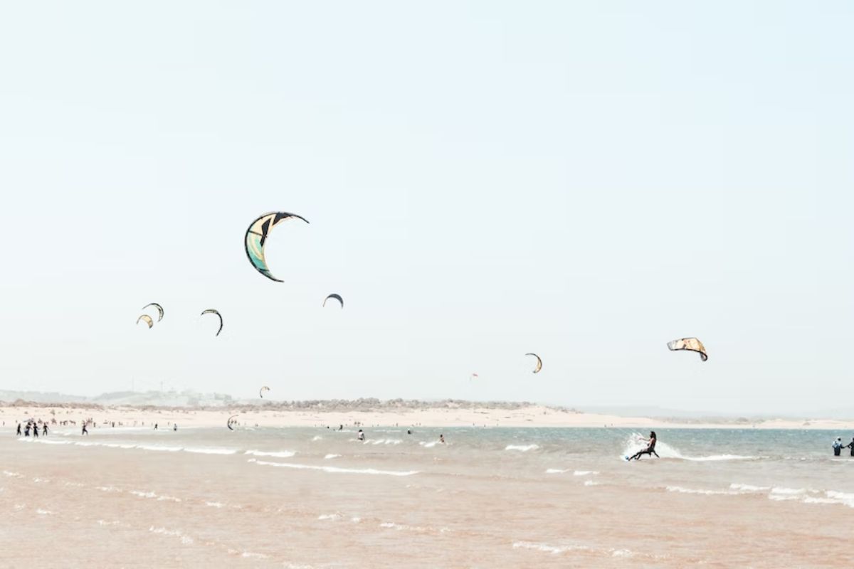 The best time to do kite surfing is from sunrise to sunset when the sun is out there.