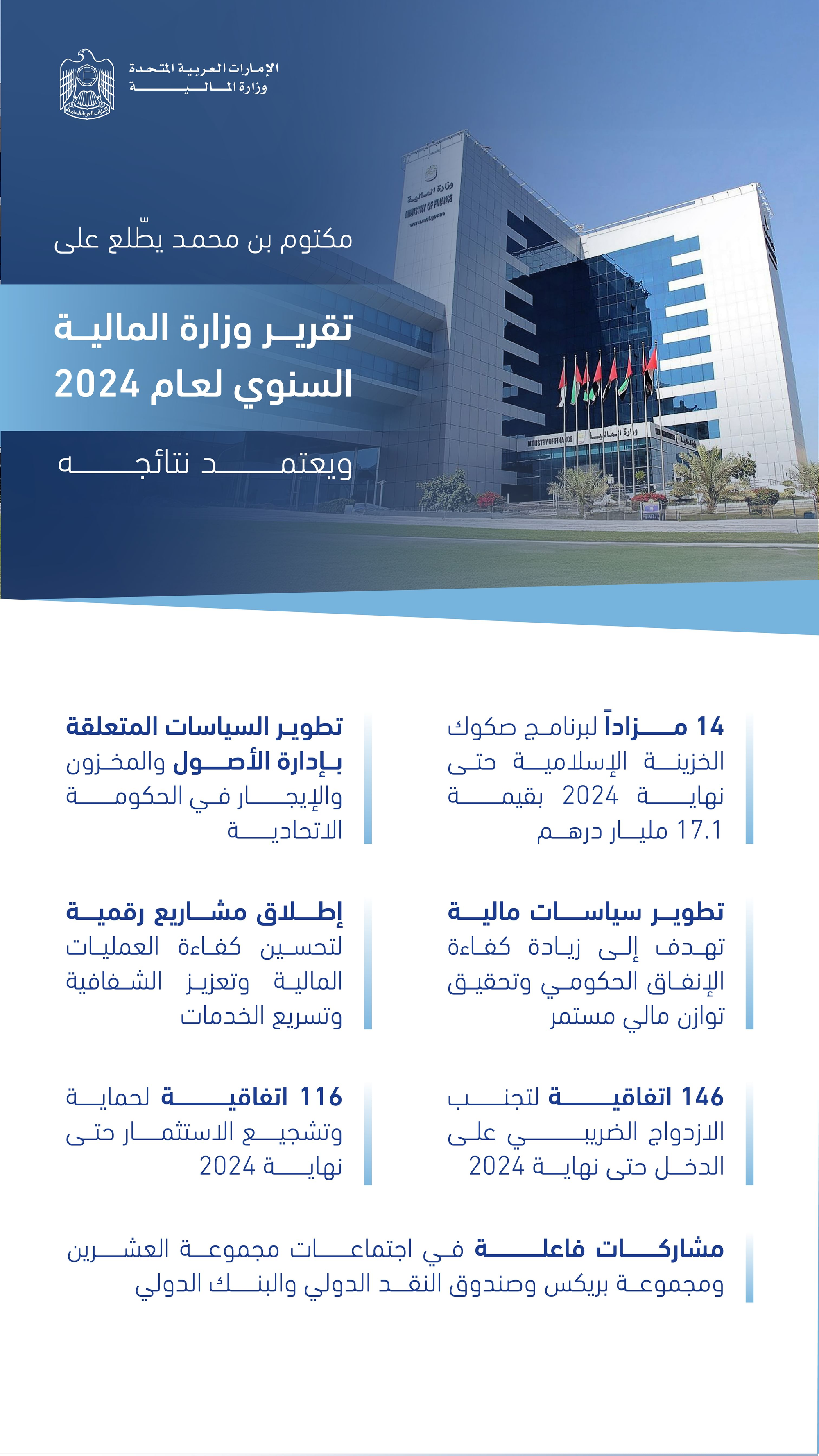 The report details the ministry’s achievements in fiscal management, innovative financing, and national economic development throughout 2024. It highlights the success of government-issued dirham-denominated Treasury bonds and Islamic Sukuk programmes, which together reinforced the UAE’s financial liquidity and market confidence.