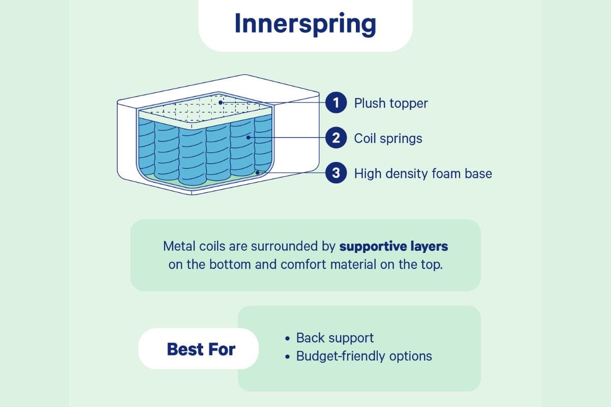 These mattresses considered the traditional type, comprise coils surrounded by comfort layers, which can include materials like latex, natural fibers, or foam. Different coil types and layouts are used to achieve various effects.