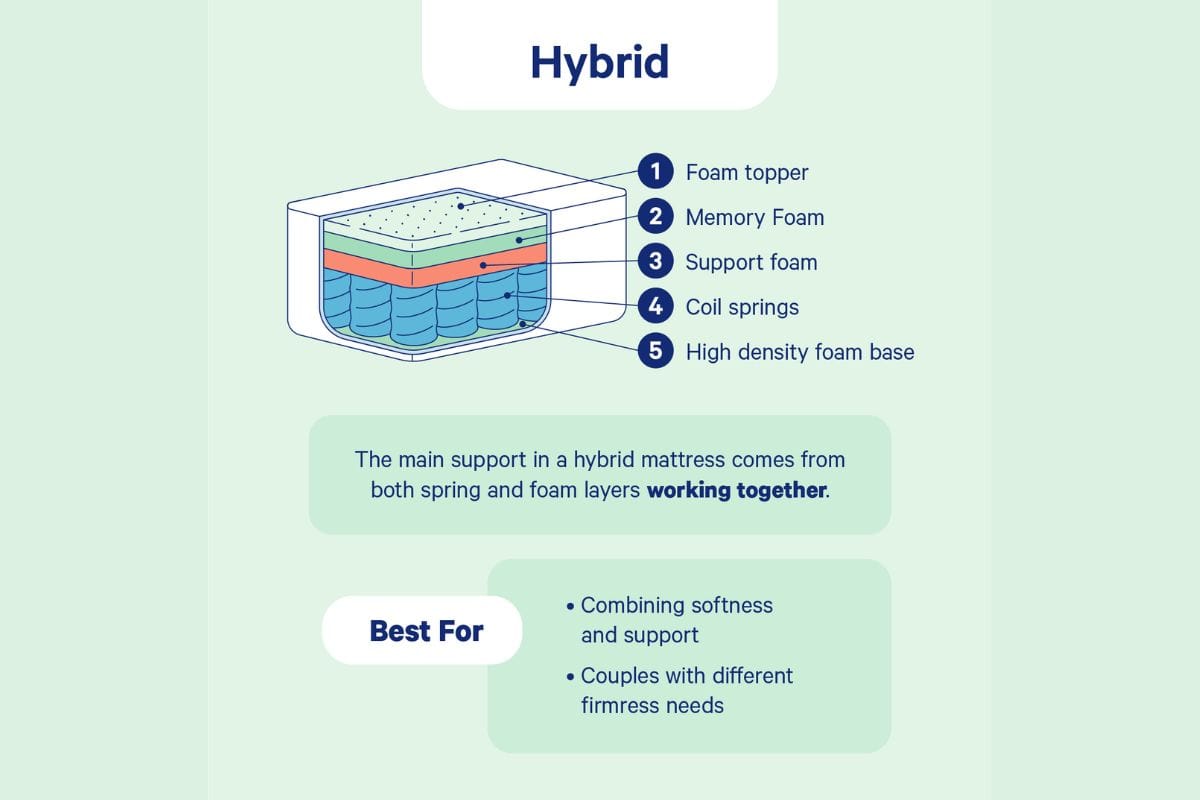 Hybrid mattresses are a preferred option for couples and individuals seeking the supportive foundation of a spring mattress along with the added comfort of a softer alternative.