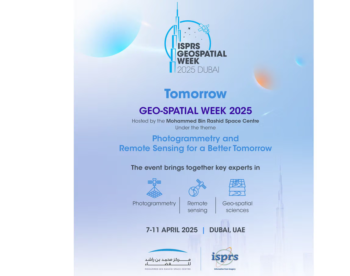 Geospatial Week 2025 (GSW 2025), hosted by the Mohammed Bin Rashid Space Centre (MBRSC) in partnership with the International Society for Photogrammetry and Remote Sensing (ISPRS), will kick off tomorrow at the World Trade Centre in Dubai.