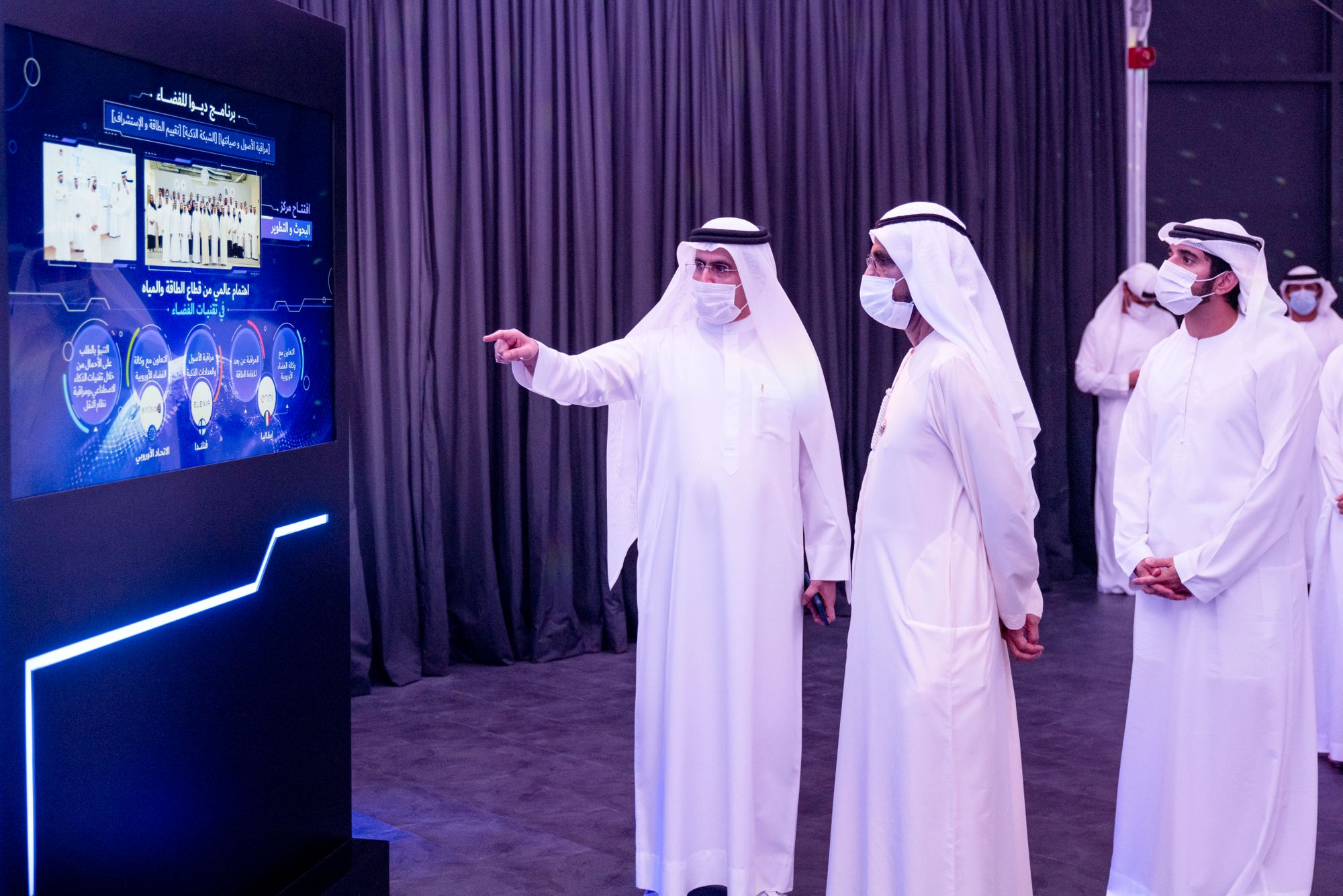 His Highness was briefed by HE Saeed Mohammed Al Tayer, Managing Director and CEO of DEWA, about the various phases of DEWA’s space programme, which seeks to enhance operational efficiency and effectiveness and promote preventive maintenance of electricity and water networks including planning, production, transmission and distribution.