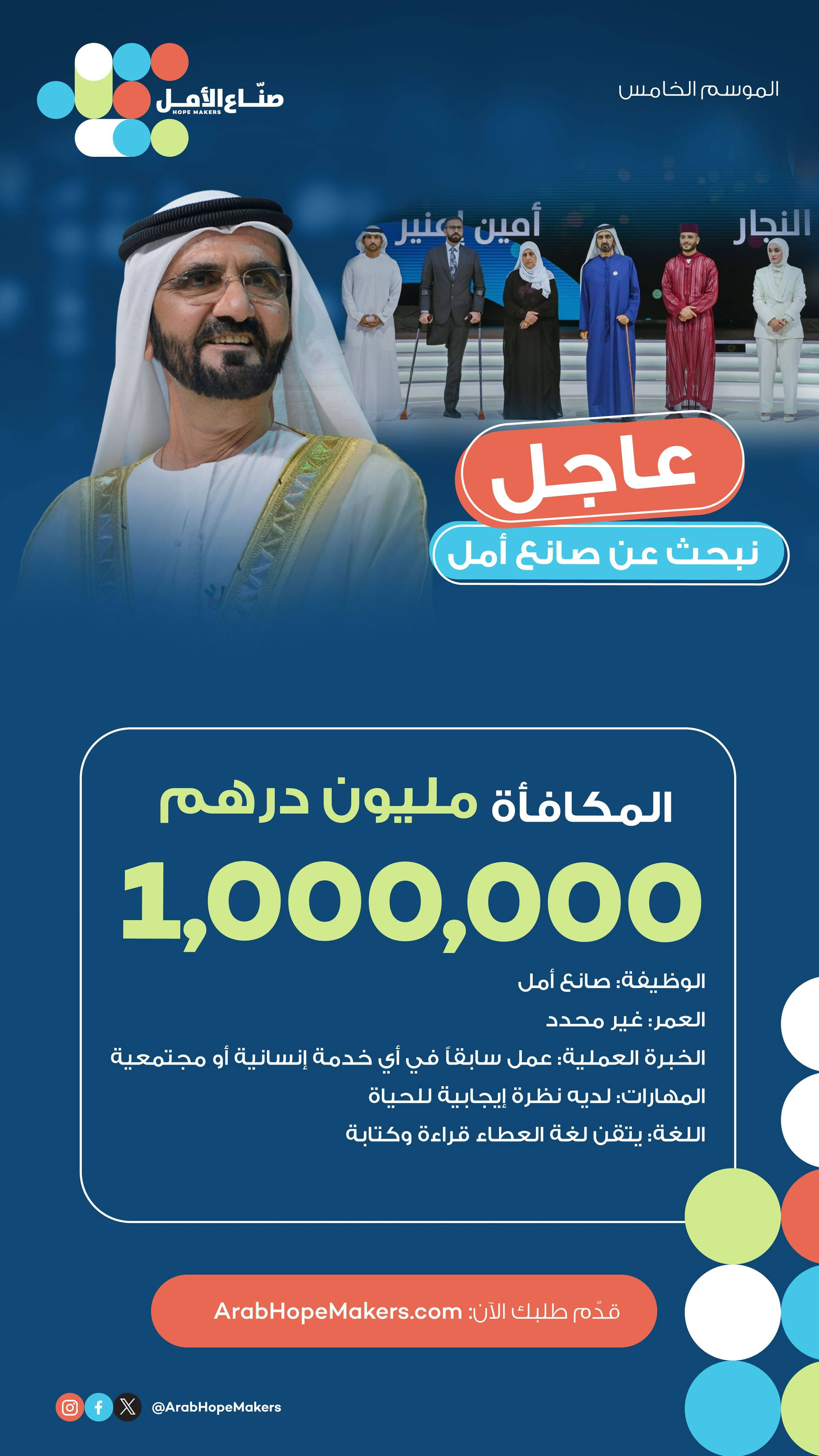 His Highness Sheikh Mohammed bin Rashid Al Maktoum, Vice President, Prime Minister, and Ruler of Dubai, has announced the fifth edition of the Arab Hope Makers initiative, the largest philanthropic initiative in the Arab world.