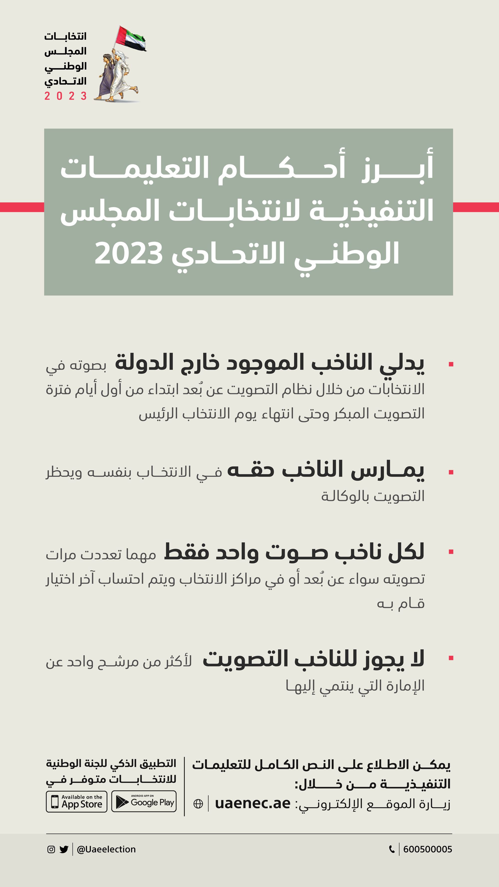 The National Elections Committee (NEC) issued Resolution No.25 of 2023 concerning the executive regulations of the 2023 Federal National Council (FNC) elections.