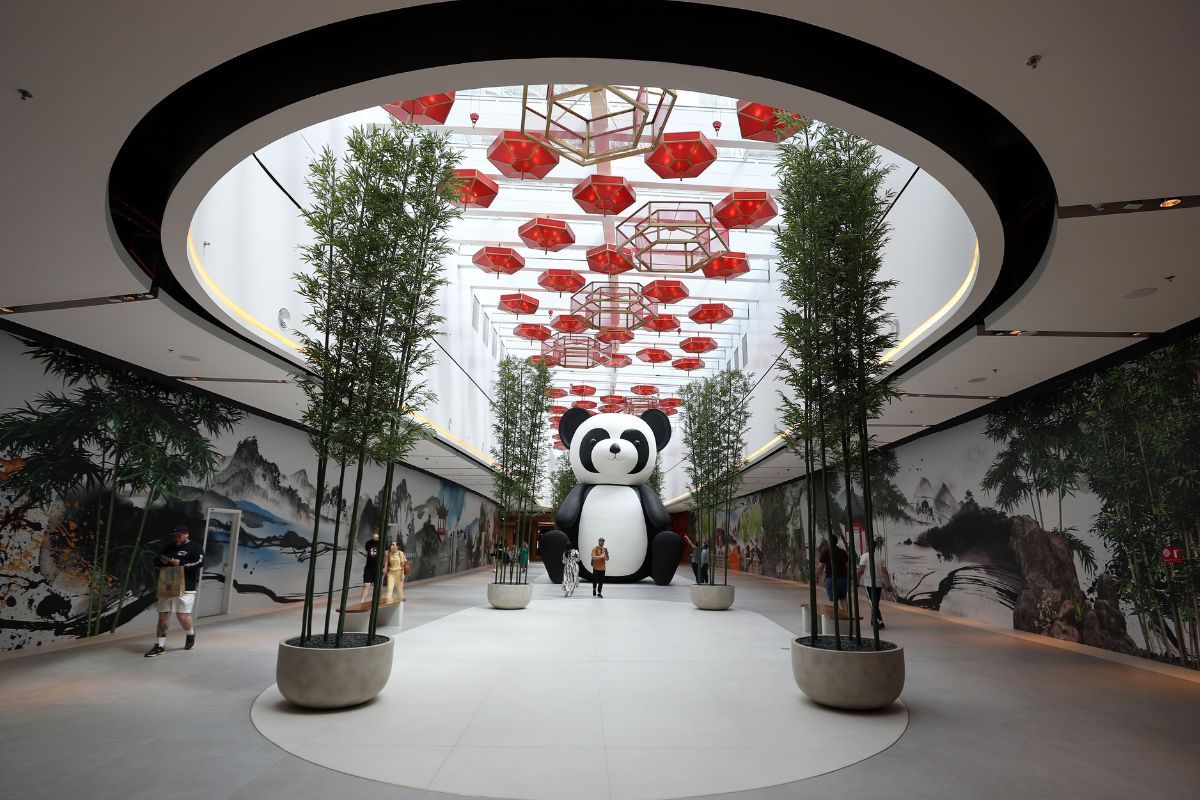 As you step into Chinatown through an intricately engraved golden gate, you will immediately be transported to what feels like the vibrant streets of East Asia. The design captures the essence of the Orient, with its meticulous architecture, diverse fabrics, rich colors, and aromatic scents. This section of the mall aims to present visitors with an authentic Asian experience, mirroring the unique energy found in neighborhoods across the world that house Chinese communities.