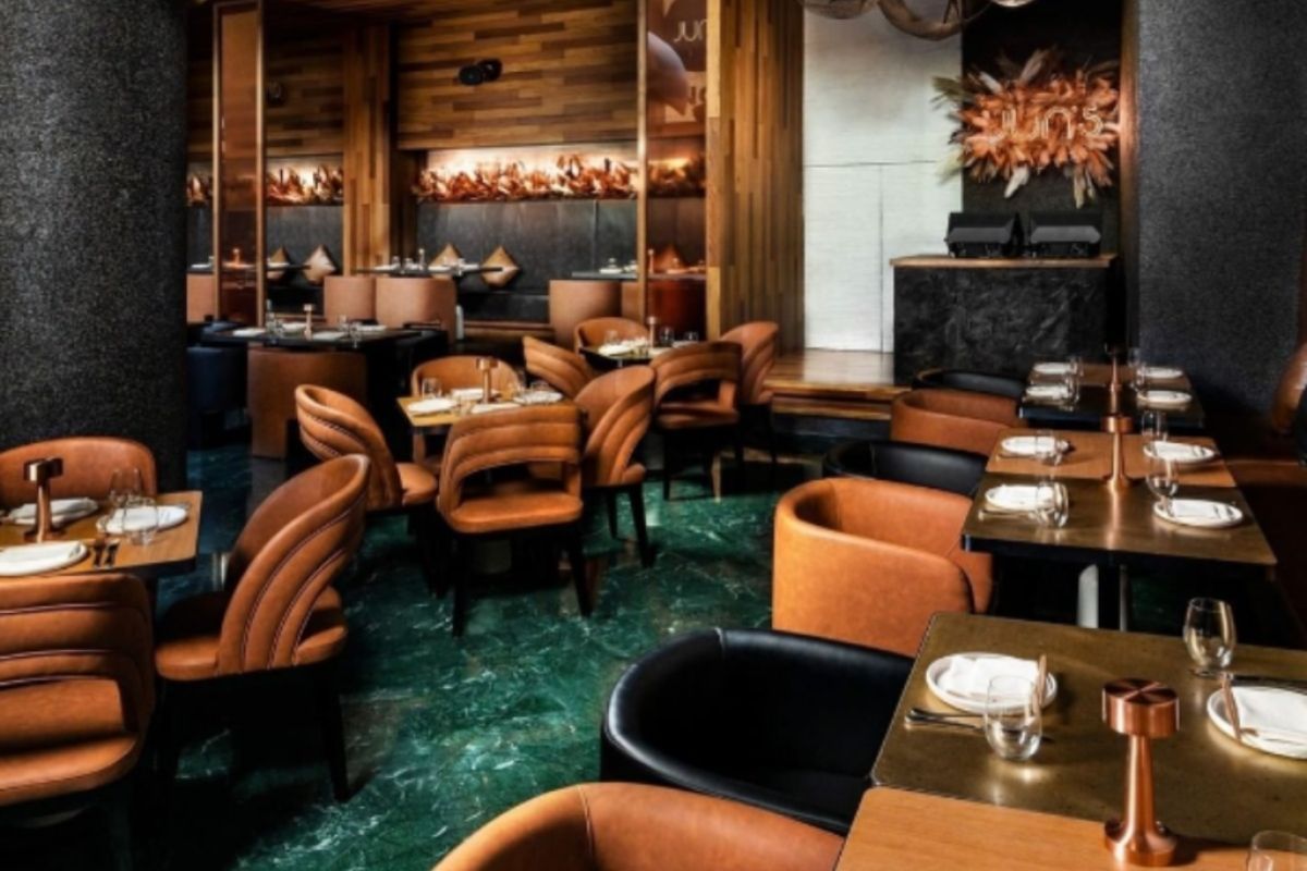The award-winning celebrity chef Kelvin Cheung is the founder of Jun's, which is influenced by his French background, Canadian roots, and Asian ancestry. You can expect eating comfort food from North America with Asian flavors in a posh, elegant atmosphere. Embark on a journey that follows the chef's gastronomic excursions across the globe with Jun's. The tempura and sweet potato chaat, his twist on a carrot, Labneh, and Furikake "bagel," seasoned garlic prawns with Korean kimchi served over khichdi rice, and the lobster in Macau sauce are some of the best dishes. It is served in a restaurant setting that has been designed with meticulous attention to detail. Notable features include a marble top bar, jade accents, and several 3D ceiling installations.