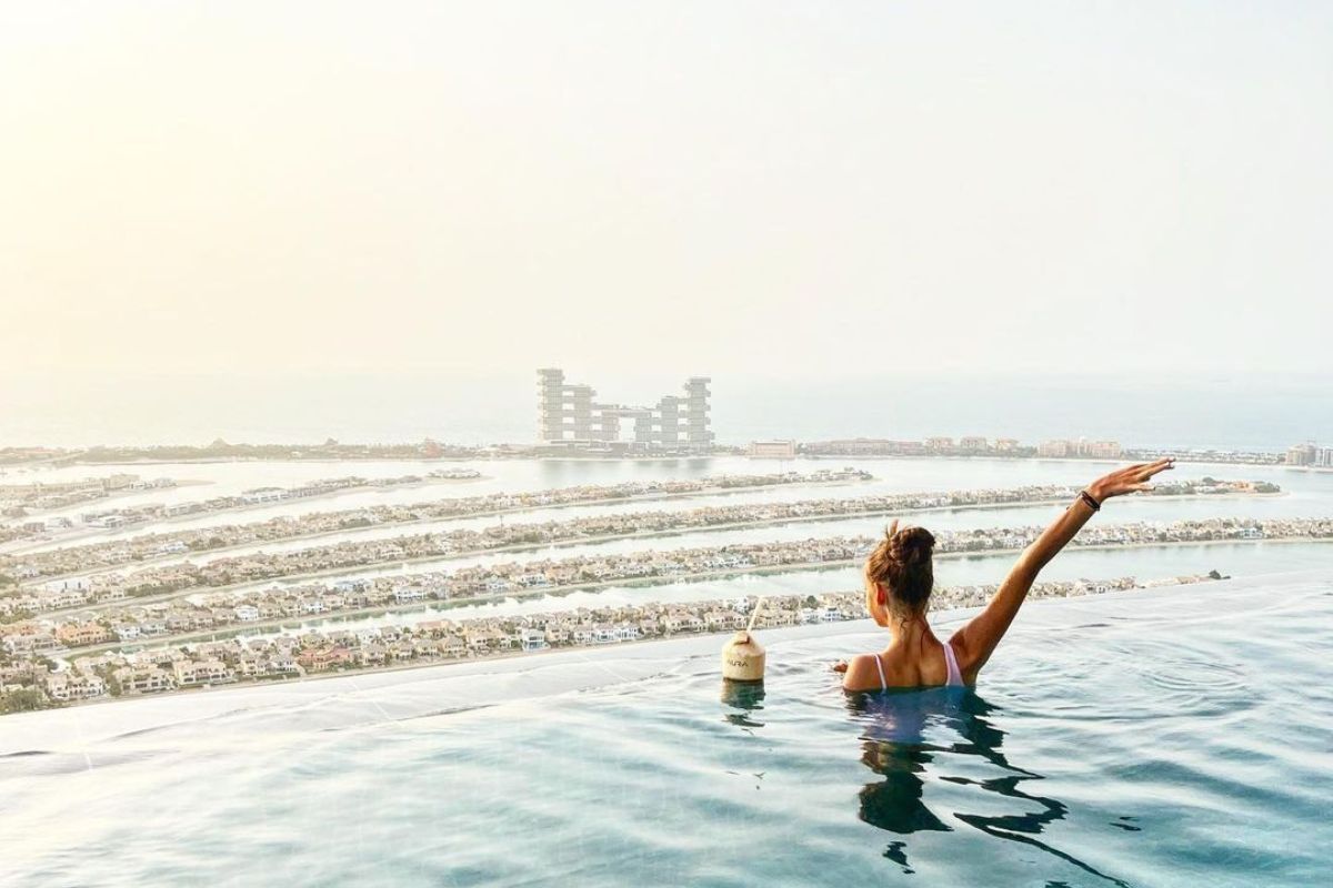 Dubbed as the world’s highest 360° infinity pool at 200 meters above the ground, the Aura Skypool is suspended in the sky, giving you a sweet view of the skyline of Dubai, overlooking Palm Jumeirah and the Arabian Gulf. And if that isn’t reason enough to want to drop what you’re doing and go spend an evening gazing at the enchanting hues of the horizon, the Aura has a lot more to offer.
