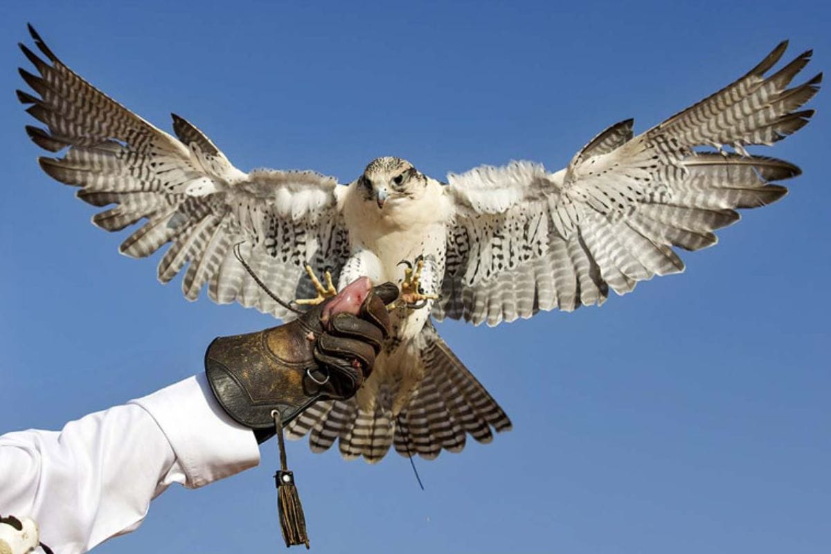 Today, falconry is considered an art in the UAE. Emiratis take great care in training their falcons, forming strong bonds with them. The training process is meticulous, requiring patience and an understanding of the bird’s behaviour. Falcons are acclimated to human presence using a leather hood called a Burqa, which calms them by covering their eyes. Training young falcons, typically around seven months old, involves techniques like food deprivation to make them more tameable. The birds are taught to dive and attack prey using feathered decoys and gradually increasing weights to build their muscles.
