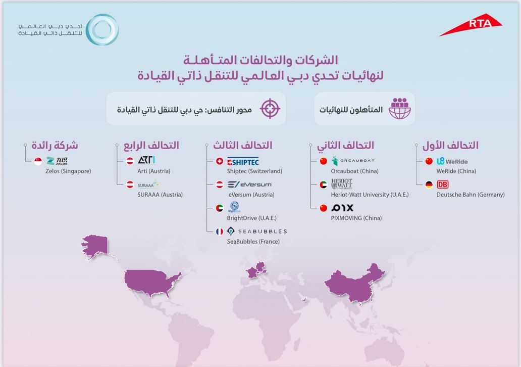 Dubai’s Roads and Transport Authority (RTA) has announced that five consortiums and a leading company have reached the final stage of the 4th Dubai World Challenge for Self-Driving Transport 2025.