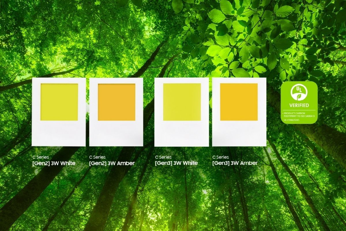 Four C-series 3W Automotive LED packages manufactured by Samsung – Gen3 (third generation) 3W White, Gen3 3W Amber, Gen2 (second generation) 3W White and Gen2 3W Amber – received verification of their carbon footprint to ISO 14064-3 by UL.