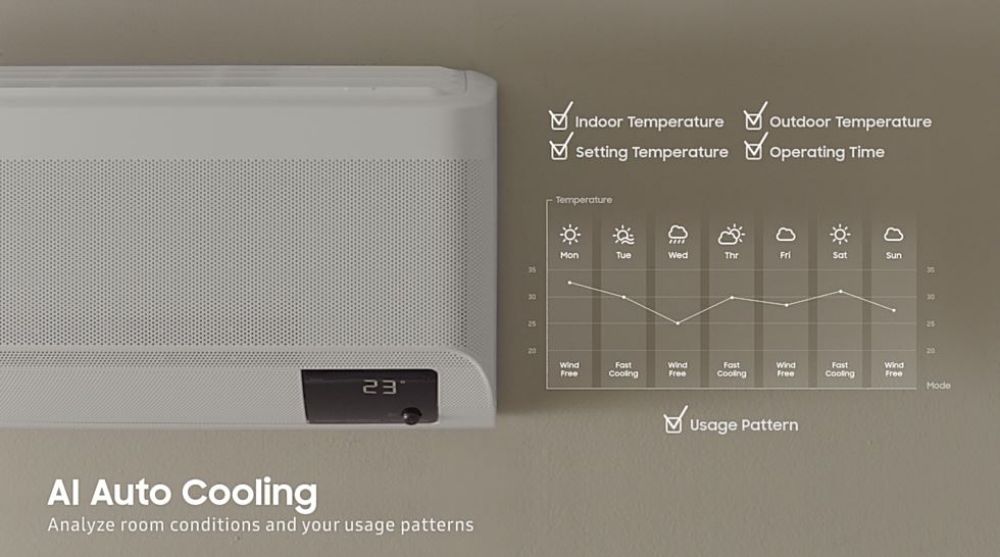Samsung’s WindFree™ Air Conditioners come with an AI Auto Cooling feature3 that makes it easier to stay cool. With artificial intelligence, the devices analyze room conditions, user-preferred temperatures and cooling modes, and even the climate outdoors to automatically switch to an optimal room setting. The unit also features a Motion Detect Sensor that will register when there is no one in a room, subsequently switching modes automatically to reduce energy waste.