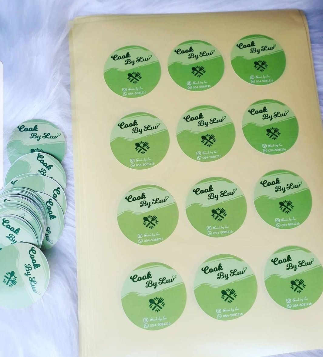 Design Logo - 300 dhs , make 10 copy of invoices book 190 dhs , print 100 sticker circle size 5 cm , 120 dhs