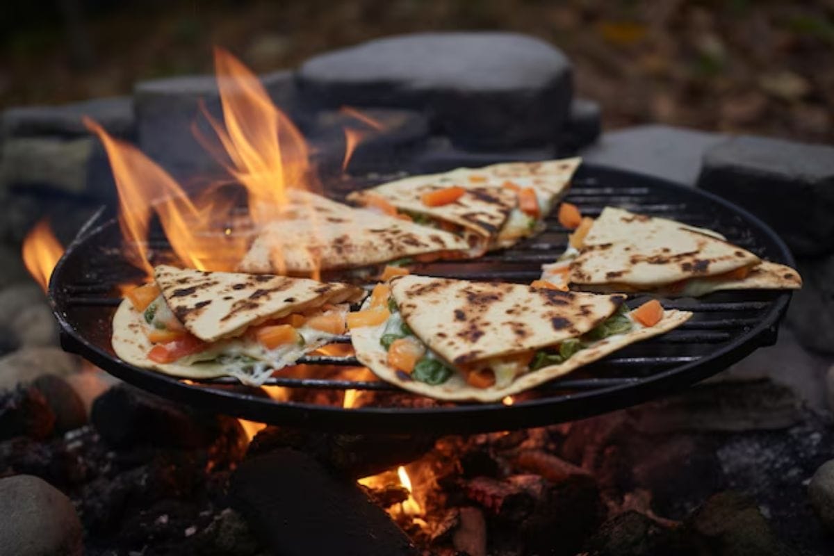 With a golden, crunchy exterior and a melted, savory filling, campfire quesadillas are perfect for satisfying your hunger around the fire. You can customize them with any fillings you like, from classic cheese and chicken to more adventurous options, making them a crowd-pleasing campfire meal.