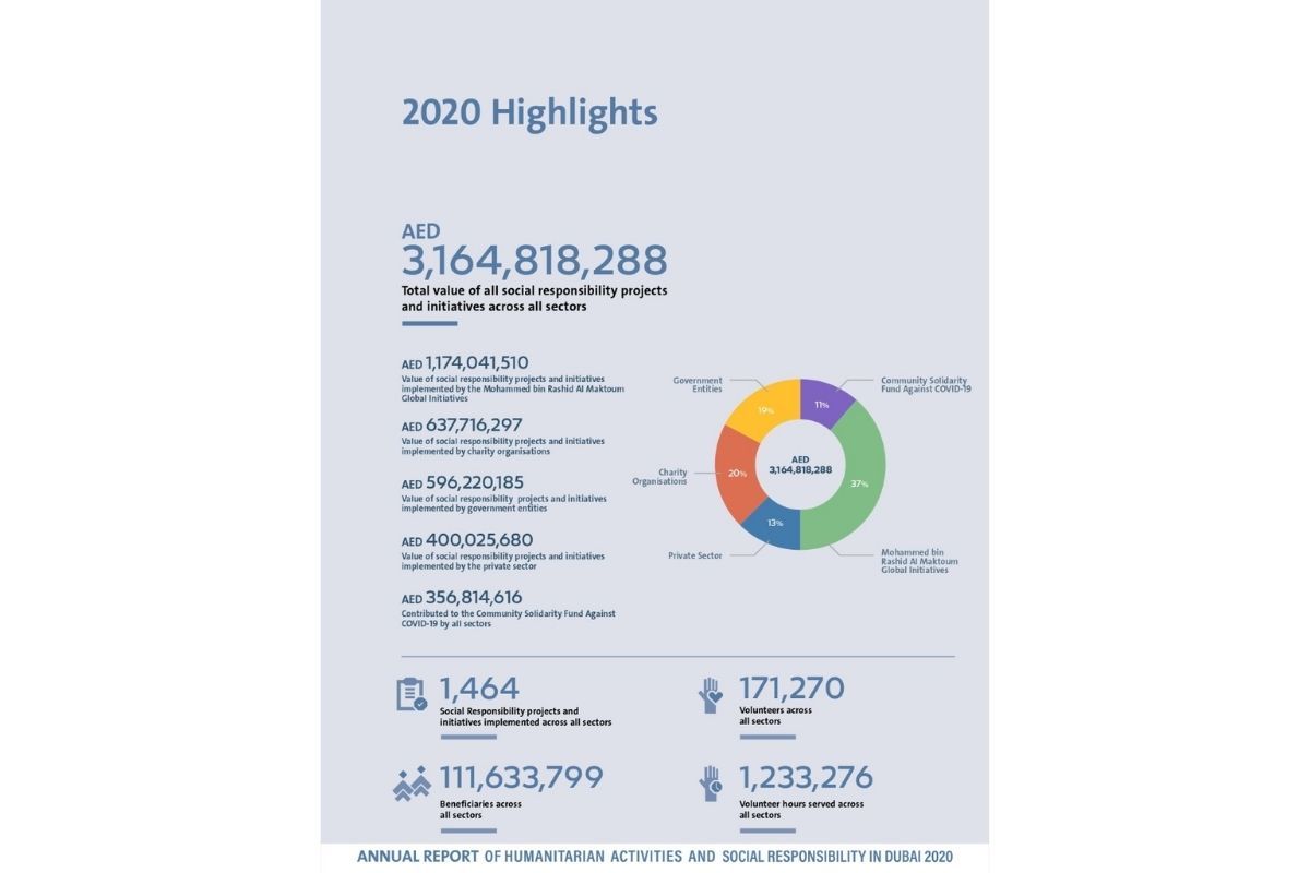 The results were announced in an annual report issued by the Department’s charitable work sector, which highlights the social responsibility initiatives of public and private sector entities supervised by IACAD, the Mohammed Bin Rashid Al Maktoum Global Initiatives (MBRGI) and charitable societies and institutions.