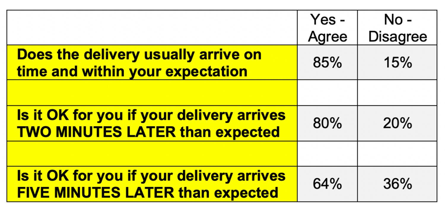 The survey, conducted by YouGov in December 2024 and commissioned by Al Wathba Insurance and RoadSafetyUAE, found that 80% of delivery customers are not bothered by a two-minute delay, and 64% would be fine with a five-minute delay.