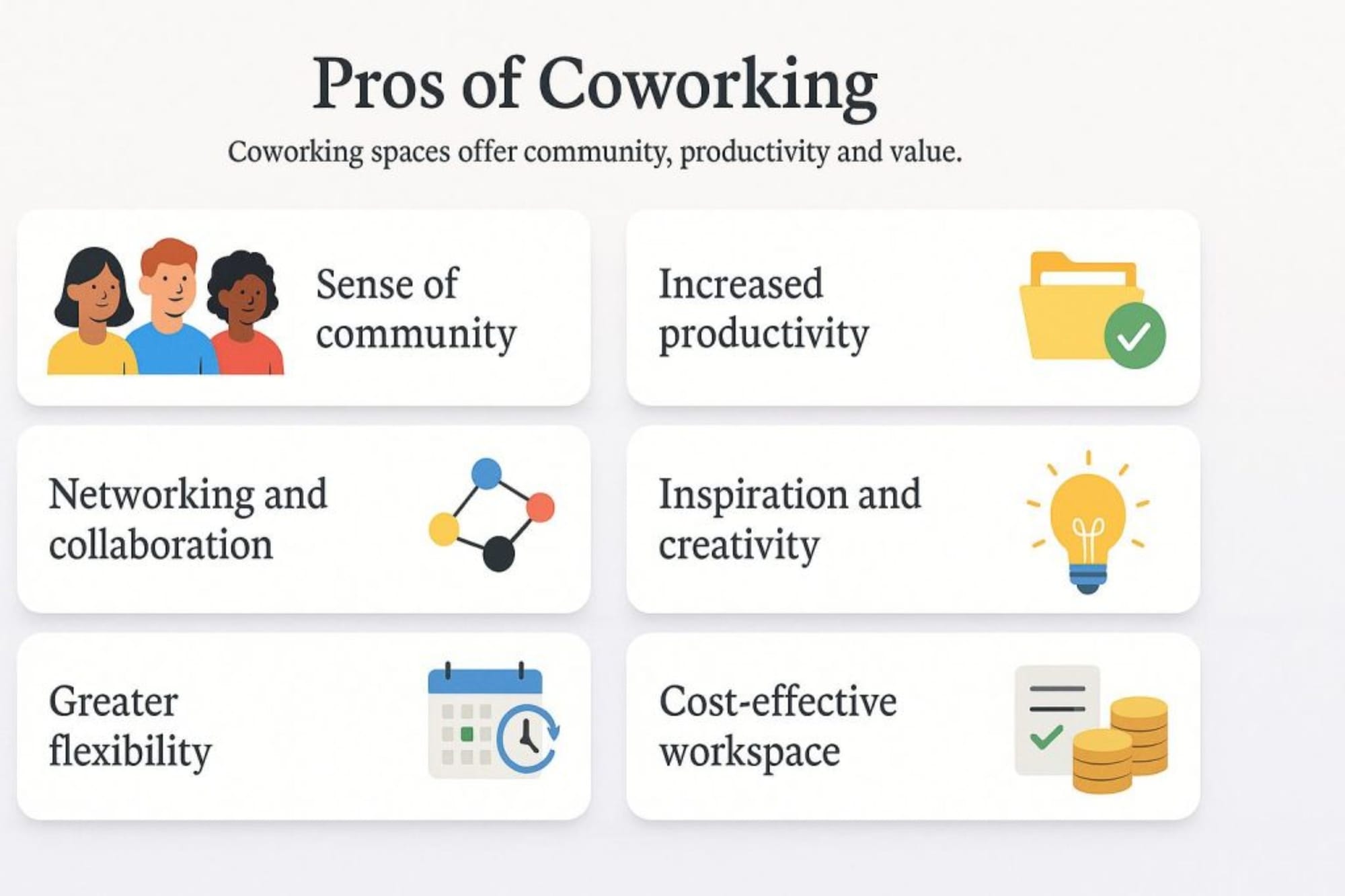 The question isn't whether co-working spaces provide benefits – evidence clearly shows they do – but rather whether the specific benefits align with your particular business needs and working preferences.