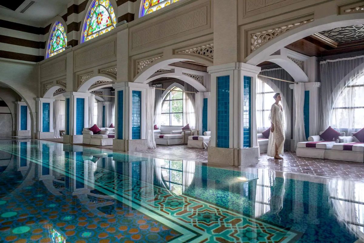 Talise Spa is an award-winning spa located in Dubai's Jumeirah Hotel. It is one of the city's most opulent spas, with an indoor pool decorated in Arabesque style. It has 42 treatment rooms, allowing you to visit with a large group of friends without having to take turns. Thalassotherapy pools, snow rooms, saunas, and steam rooms are among the amenities. Exfoliating facials and refreshing hammams are among the exclusive treatments available. It has one of the best hammams in Dubai, with a wide range of treatments to choose from. All of their treatments are worthwhile, but the Coffee Pelling Hammam is a must-try.