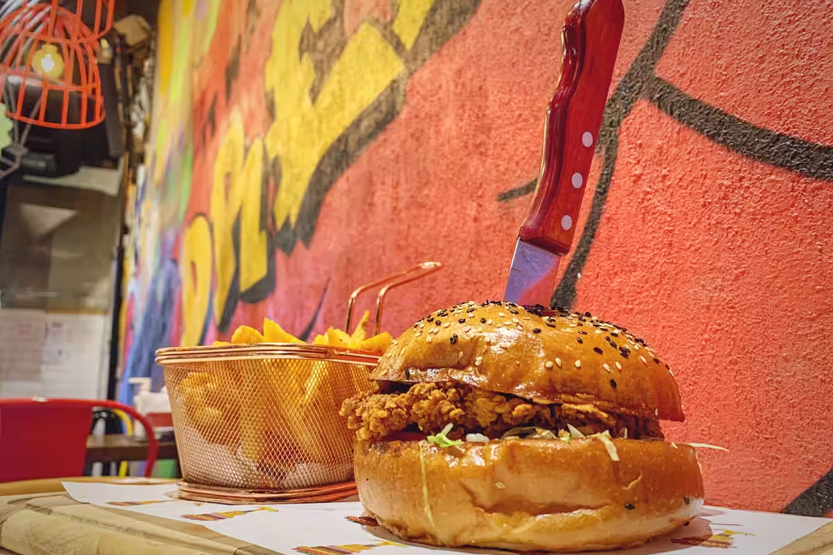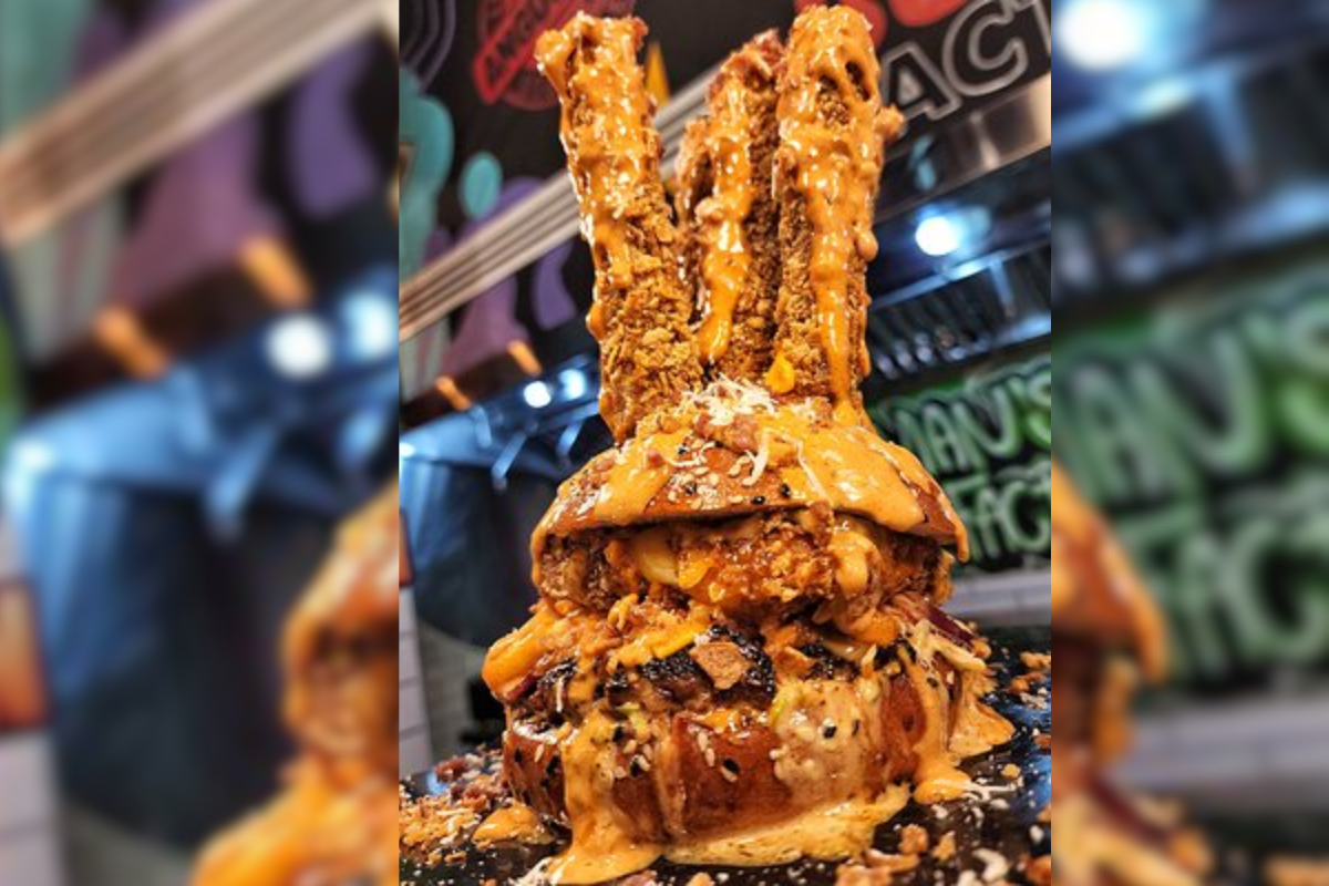 Burgr Factory is a gourmet burger joint that specializes in creating delicious burgers that are both unique and flavorful. Originally from Romania, this burger spot is located in the heart of Dubai and is known for its ingenious and gigantic creations. The eatery is widely known as ‘The Cheat Day Headquarters’ which can also be spotted in bold letters at the entrance. Founded by Alin Ciobanu aka #TheBossMan, this unique burger spot in Dubai not only serves the most delicious burgers you've ever tasted, but each of its creations will also make your Instagram feed outshine others. The joint’s graffiti style ambience sets the mood for its unique burgers. They have over 100 burgers to choose from, each stacked high with uncommon contents such as macaroni and cheese, peanut butter, fried pickles, mozzarella sticks, and much more - in other words, all the comfort food you could ever want - as well as 5kg burger patties.