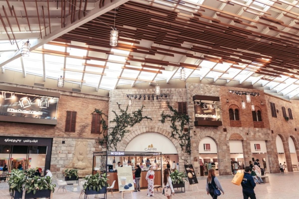 The style of The Outlet Village is inspired by the structures of medieval markets in San Gimignano in, Italy. The Outlet Village is a closed indoor mall, and the structure does not resemble a typical shopping centre in Dubai. Instead, it looks like an outdoors European town with quaint shops and boutiques on either side of the pathway.