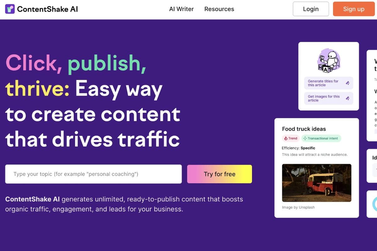 ContentShake AI by Semrush helps you write long-form, SEO-friendly content. It generates entire articles in one click and optimizes them using AI chat. The tool integrates target keywords and search intent insights, making it perfect for small businesses and entrepreneurs.