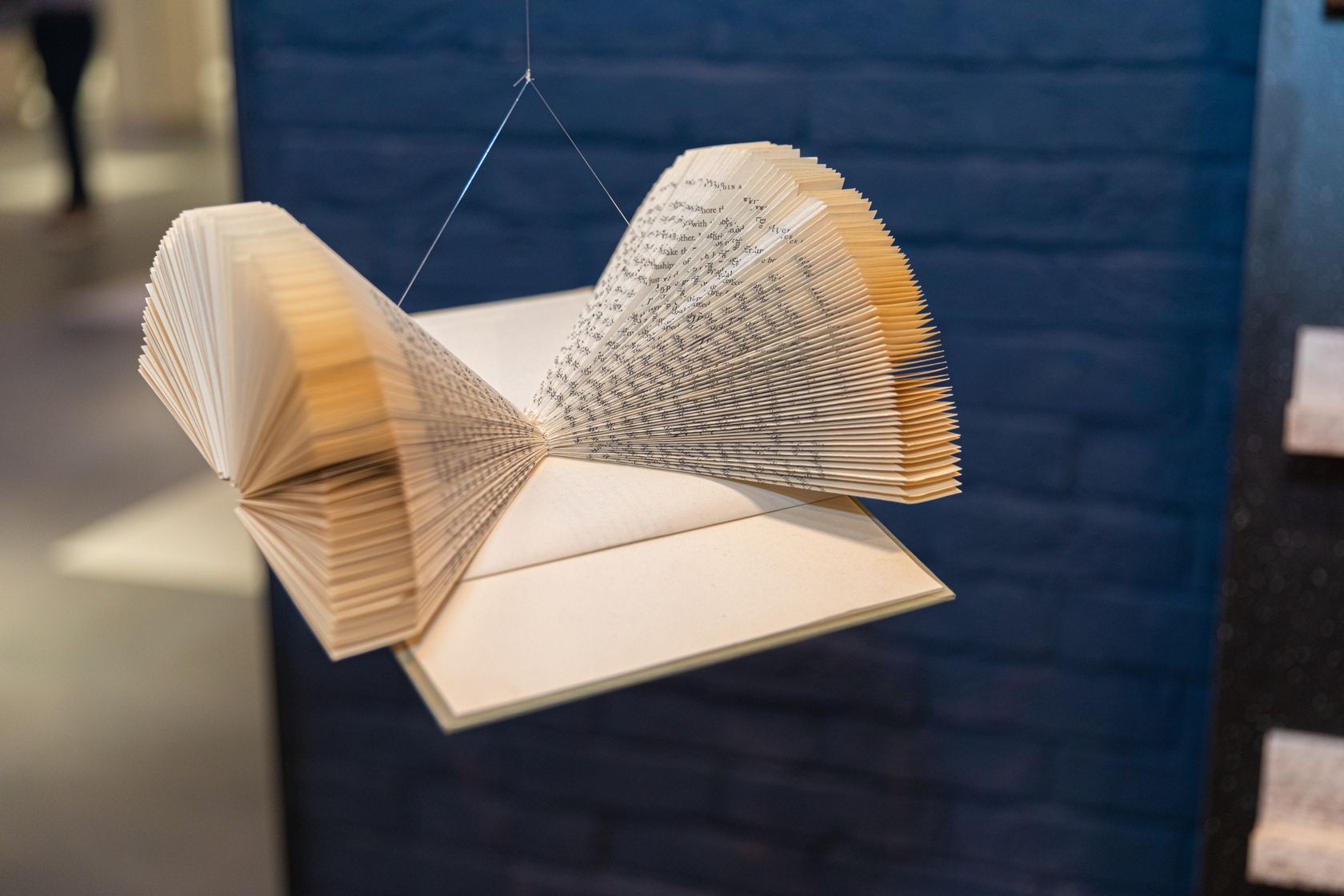 “On a few occasions, we came across books that weren’t in a condition to be sold or added to the shelves, and that’s where stemmed the idea of adorning the store with the bits and pieces of the ripped, in shreds books,”