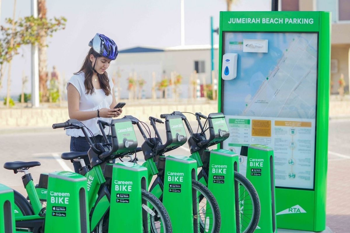 If you are planning on moving around Dubai, one of the most cost-efficient ways to do so is by choosing to walk or cycle around. With properly defined roadways and designated tracks, it is completely safe to be a pedestrian in this bustling city. It also contributes to a healthy physical and mental being. Walking or cycling also allows you to immerse yourselves in the local culture, discover hidden gems, and have a closer interaction with the surroundings. You can rent bicycles or e-scooters for affordable hourly rates using the Careem app. You can find the Careem Bike stands at popular tourist attractions and near bus and metro stations in Dubai.