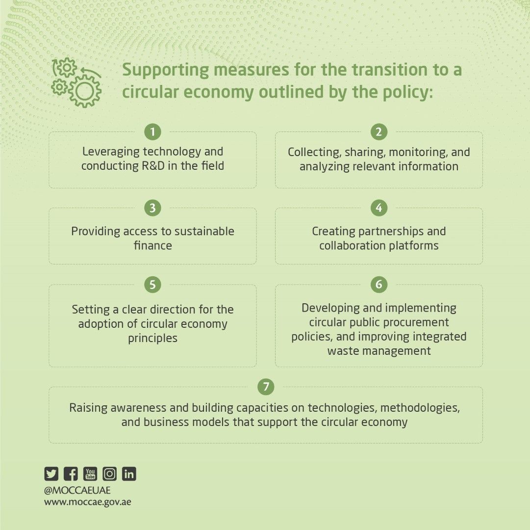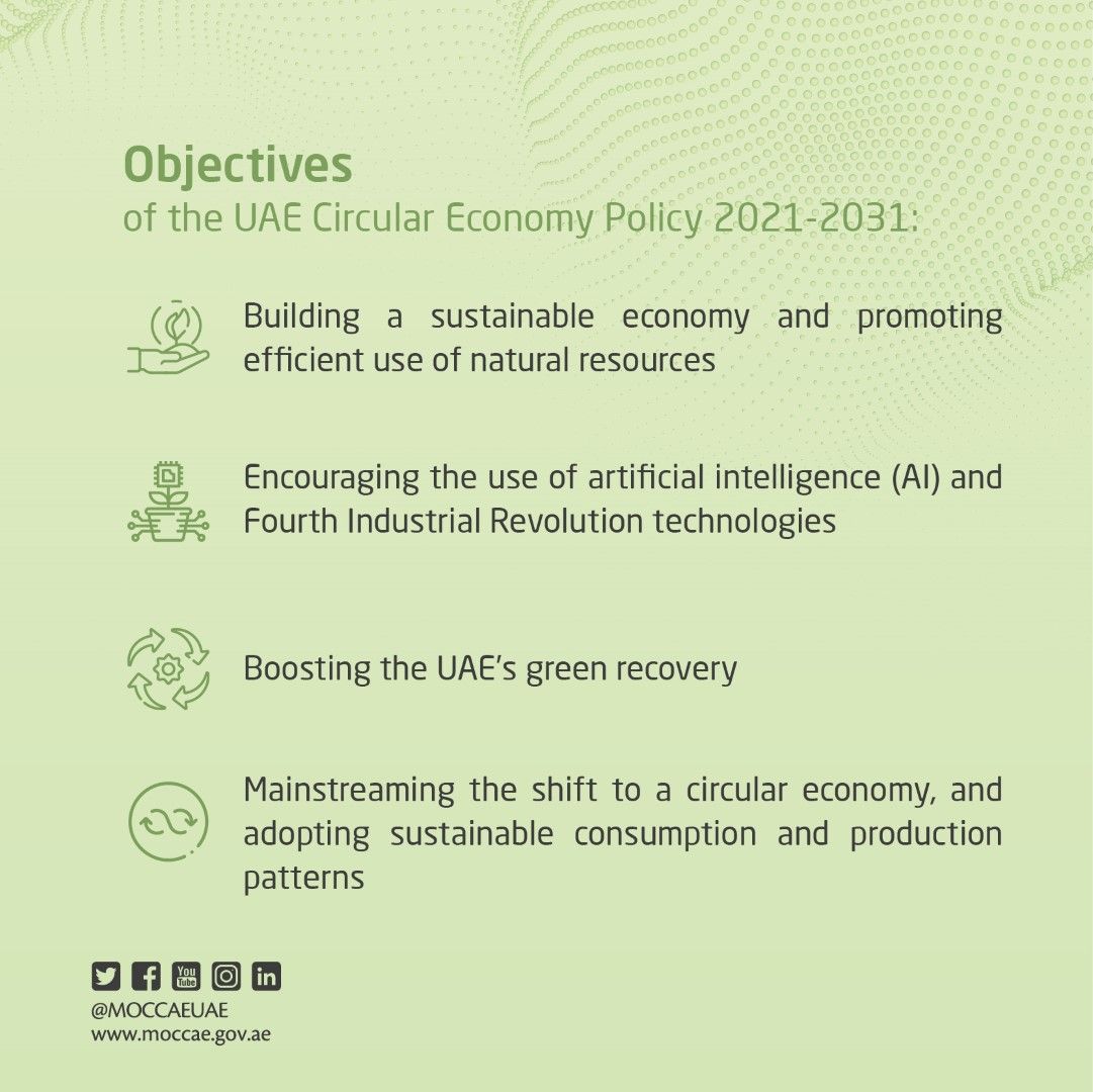 "The shift to a circular economy will require a concerted effort from national and local government, the private sector, and the general public. Therefore, the UAE Circular Economy Policy 2021-2031 is also a call to action for all stakeholders across the board to consider how they can think and act in a more circular way to support the transition that aligns with the objectives of the UAE Centennial 2071," he added.