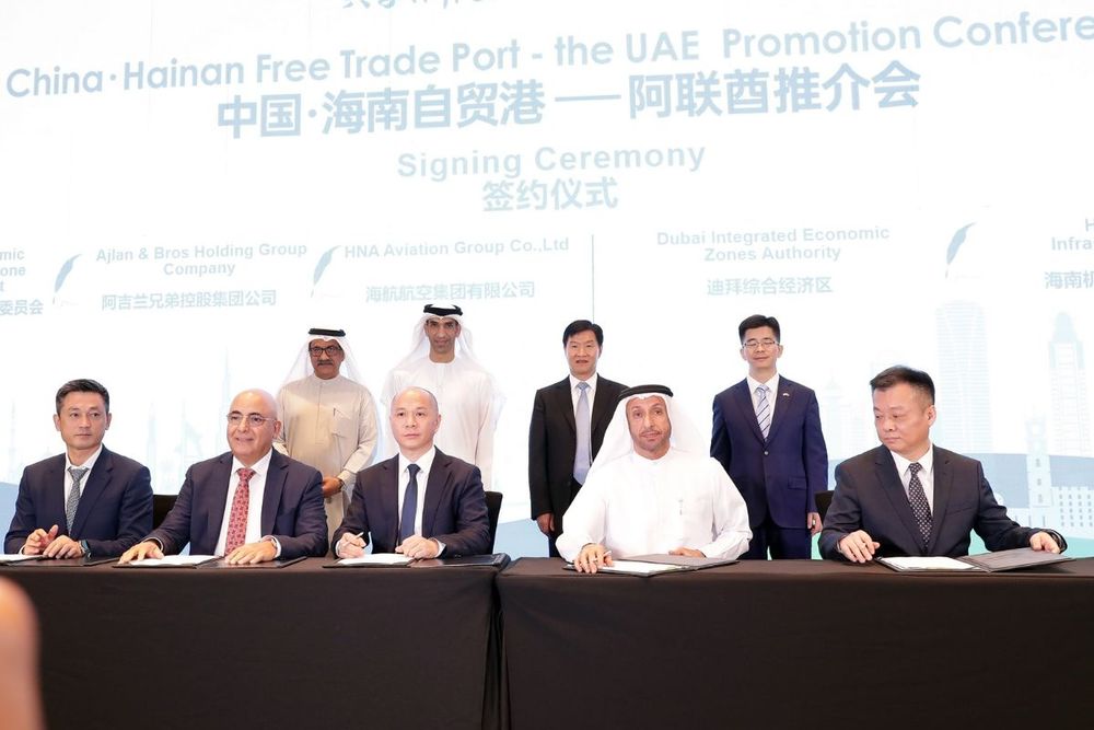 The signing ceremony took place during the Hainan Promotion Conference in Dubai, and was attended by Dr. Thani bin Ahmed Al Zeyoudi, Minister of State for Foreign Trade, and Liu Xiaoming, Governor of Hainan Province.