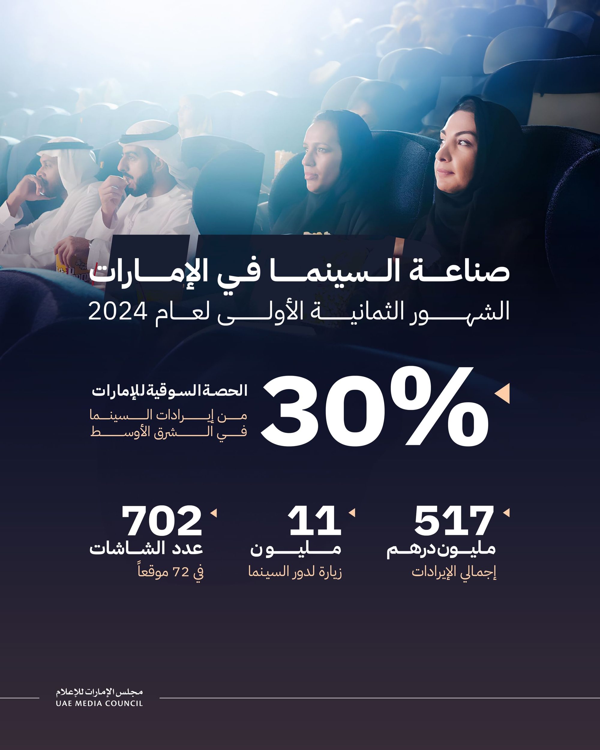 The UAE Media Council has announced that the UAE’s cinema sector generated revenues of AED517 million during the first eight months of this year, attracting approximately 11 million cinema visits.