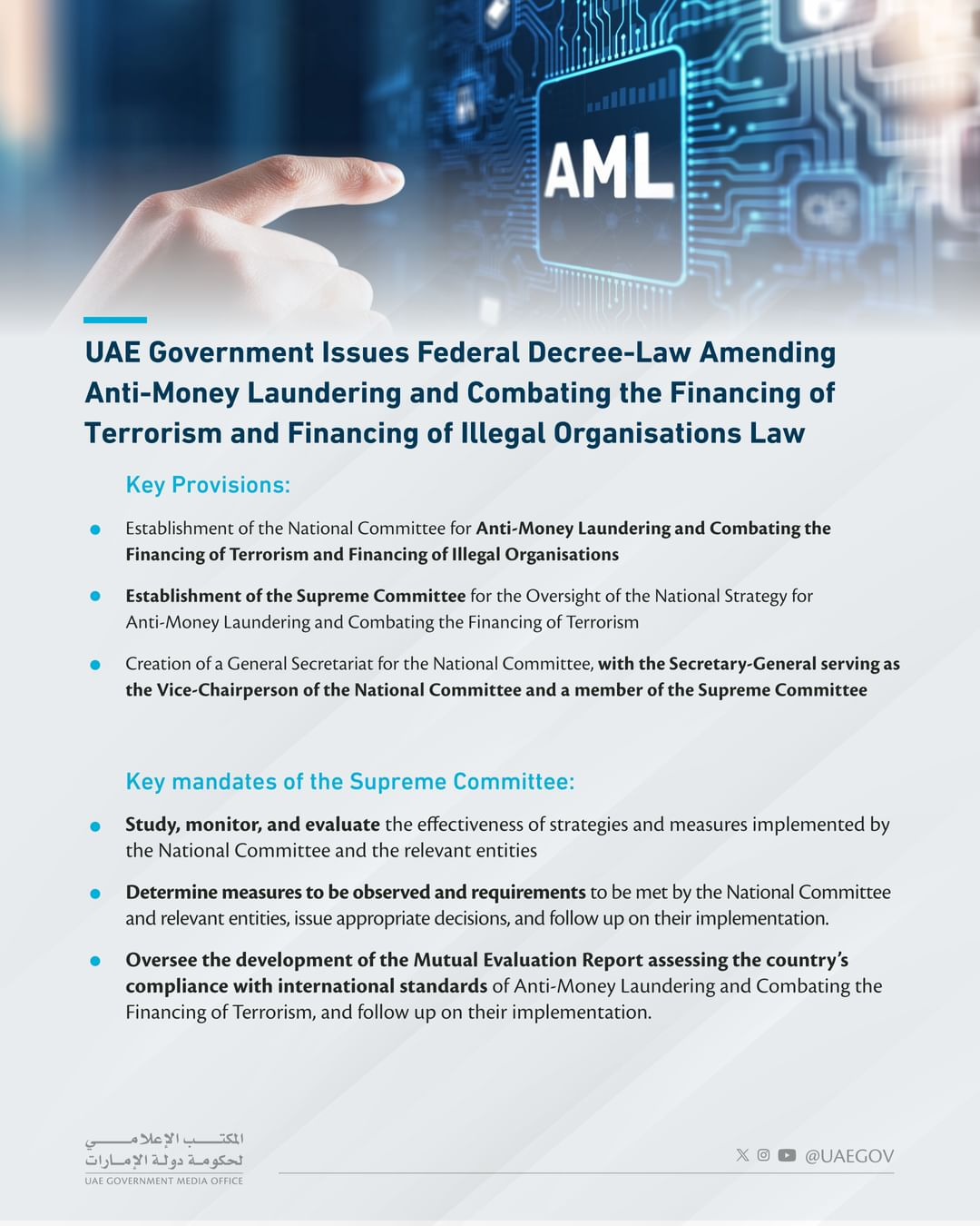 The Government of the United Arab Emirates has issued a Federal Decree-Law amending key provisions of the Federal Decree-Law on Anti-Money Laundering and Combating the Financing of Terrorism and Financing of Illegal Organisations.