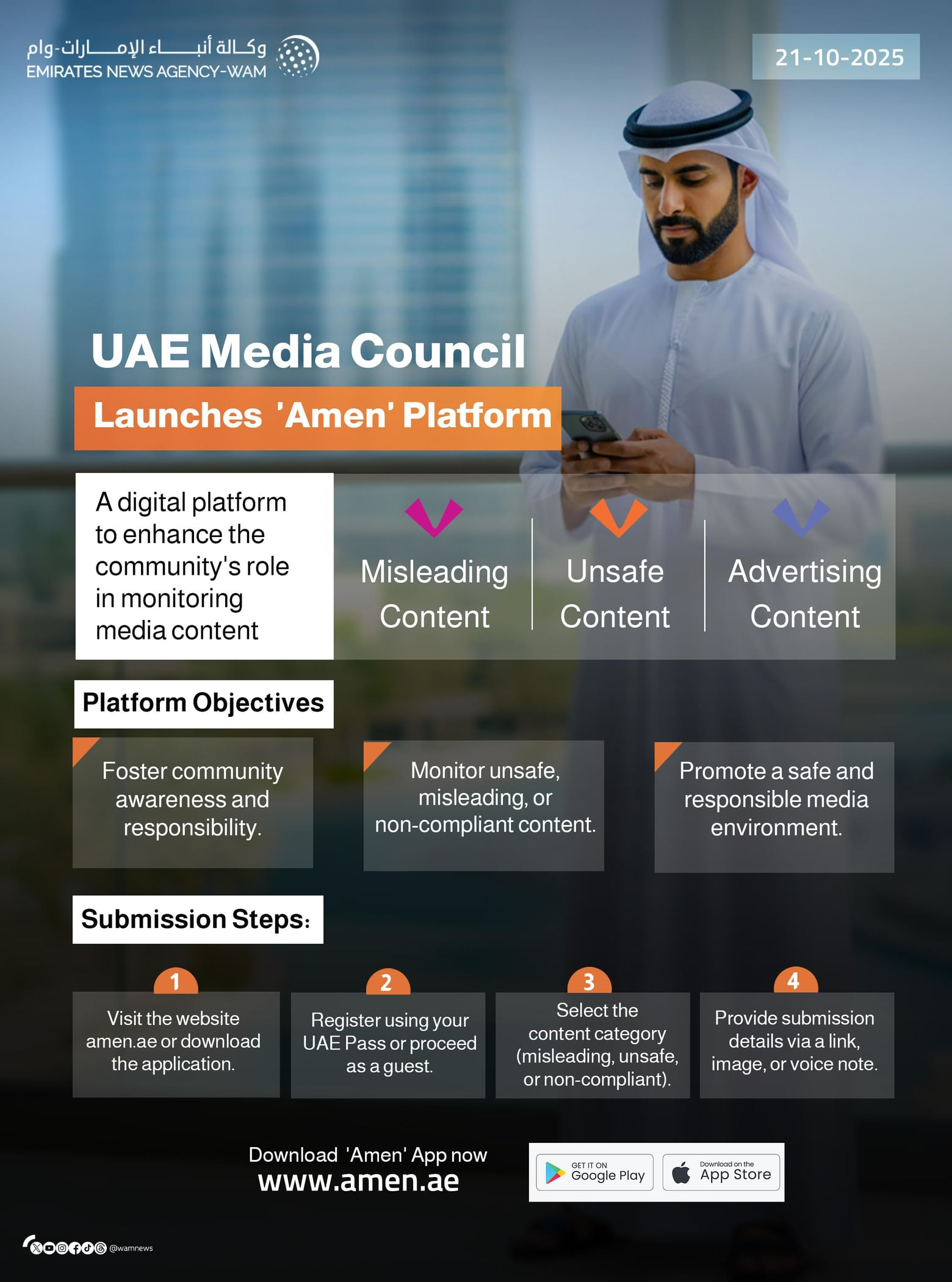 The UAE Media Council has launched “Amen,” a new digital platform that enables the public to monitor and share feedback on media content across the country, reinforcing community participation in shaping a responsible and ethical media environment.