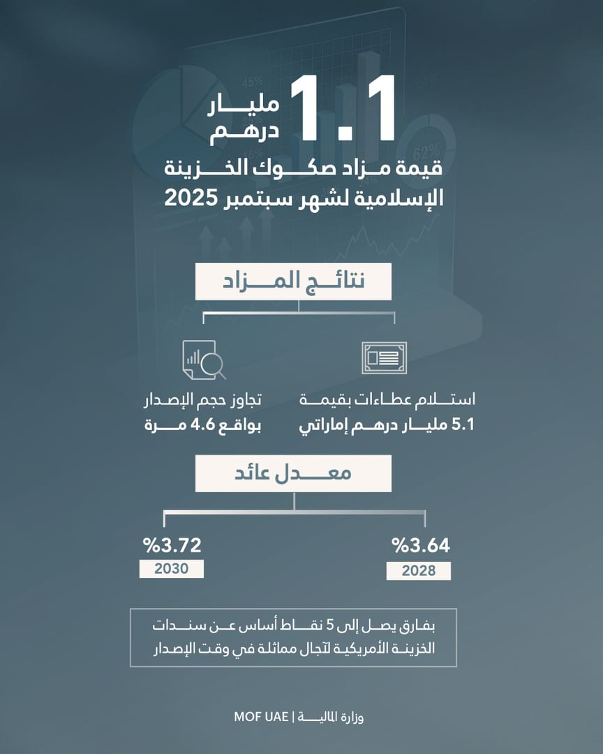 The UAE Ministry of Finance has successfully completed the September 2025 auction of Islamic Treasury Sukuk, raising AED1.1 billion in collaboration with the Central Bank of the UAE.
