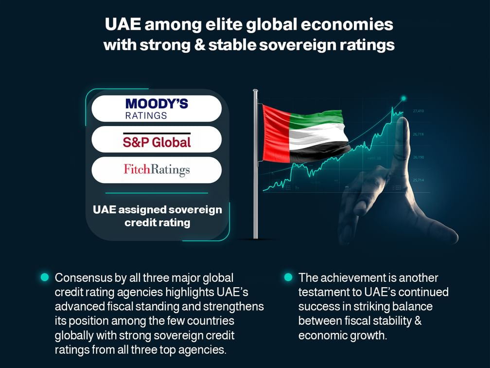 The United Arab Emirates has earned high sovereign credit ratings from all three major international credit rating agencies, reinforcing global confidence in the country's economic strength and fiscal stability.