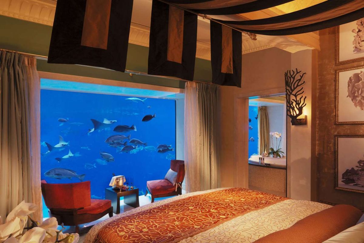 What's better than enjoying a meal among the sea creatures? Watching them from the comfort of your hotel suite! As previously mentioned, Atlantis the Palm is one of the best luxury hotels in the city. And that reputation is reflected through the countless suites available. The most notable one that puts this on the list is the Poseidon Underwater Suite. This unique three-story suite offers breathtaking views of the underwater world with floor-to-ceiling windows. Guests staying in the Poseidon Suite can marvel at the vibrant marine life while relaxing in the spacious living area, or enjoying a delicious meal in the dining room. You can take advantage of the daily complimentary breakfast, afternoon tea, and evening canapes. There is even exclusive in-room dining services, making sure you don't need to leave the suite to enjoy the amenities. Aside from the stunning views and luxurious meals, the suite's other amenities include a 24-hour butler service, a private elevator, and an underwater spa for the ultimate relaxation. The Poseidon Underwater Suite is truly one of the best suites to book at Atlantis, creating a perfect mix between luxury and nature.