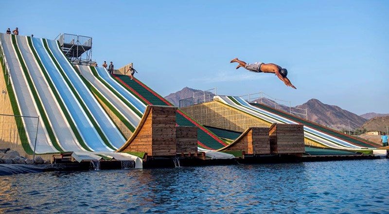 The most unique attraction in Hatta Wadi Hub! Unleash your adrenaline as you launch from multiple slide straight into a plunge pool allowing you to reach heights of 15 meters and speeds of 40-80kmph. The thrill mixed with the view is breathtaking. Gear up, grab your board and race a friend to the bottom.