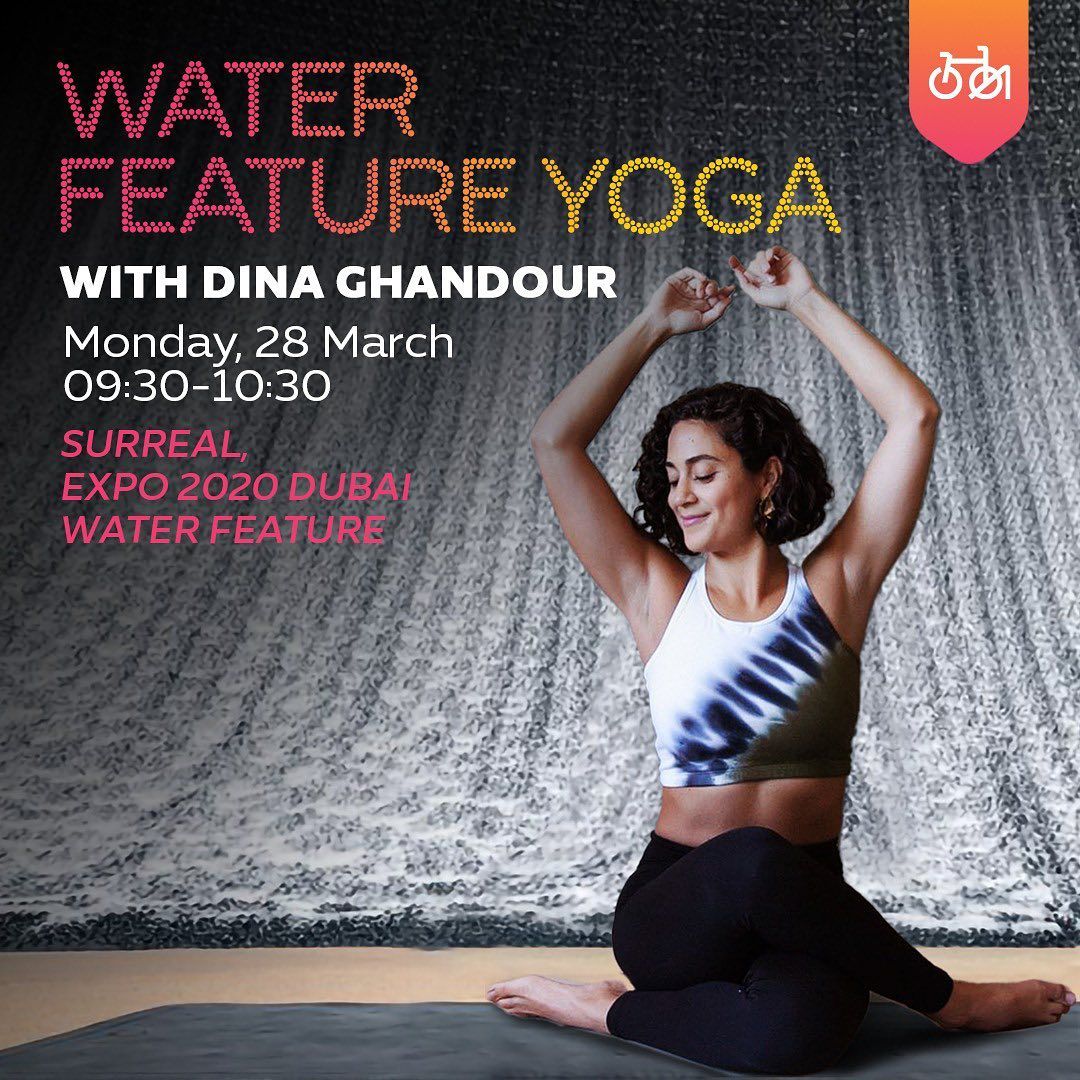 Join the fabulous Dina Ghandour at the Water Feature for a surreal yoga experience with the sound of the water at 9:30 am to 10:30 am on Monday, exclusively for the ladies. This session is free for everyone with an Expo 2020 pass and will get a free yoga mat to take home as well.