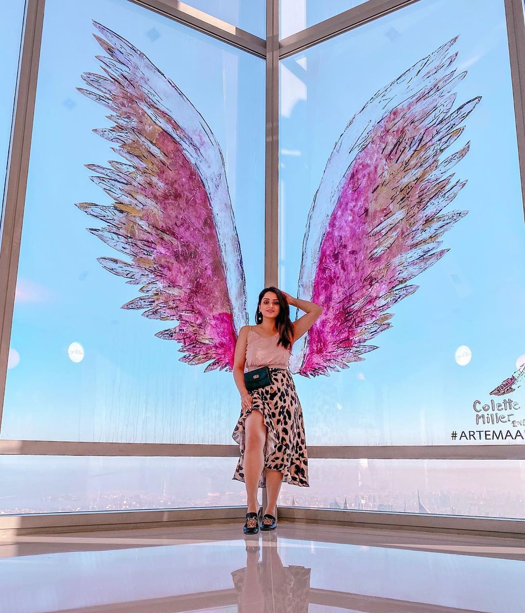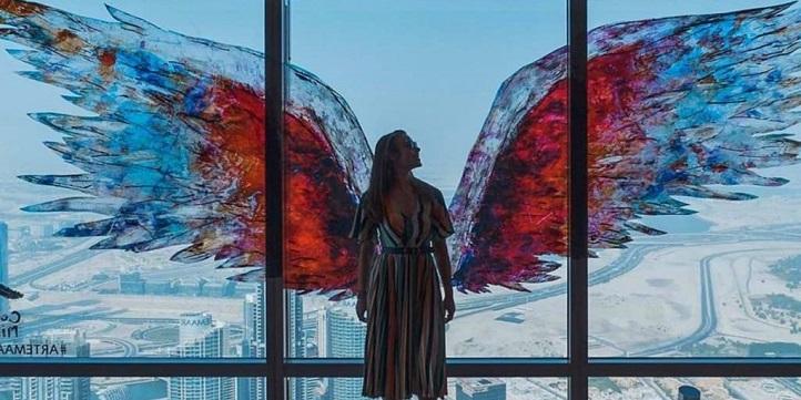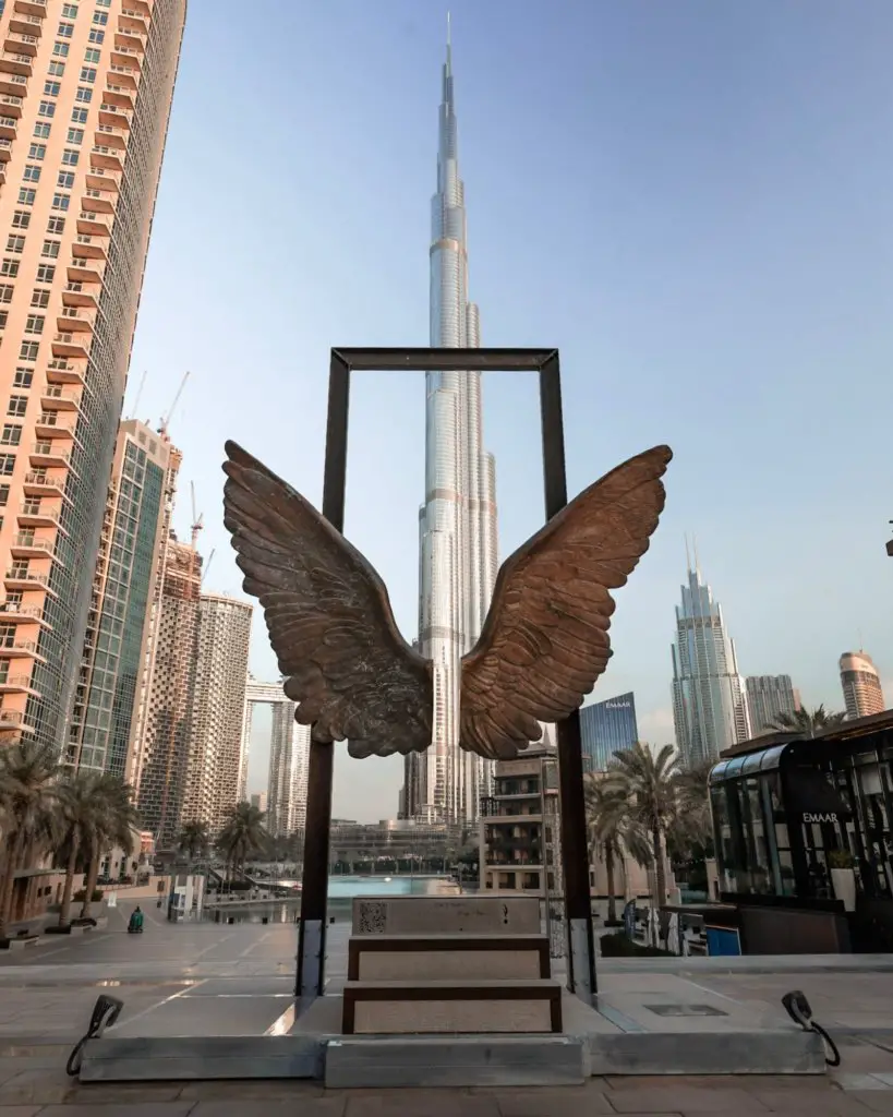 If you want to take some photos with the Dubai skyline in the background, don’t miss out on the glass viewing platform on the 124th floor. The painted wings inside the building are one of the most famous instagrammable spots in Dubai so make sure to take a photo there as well!