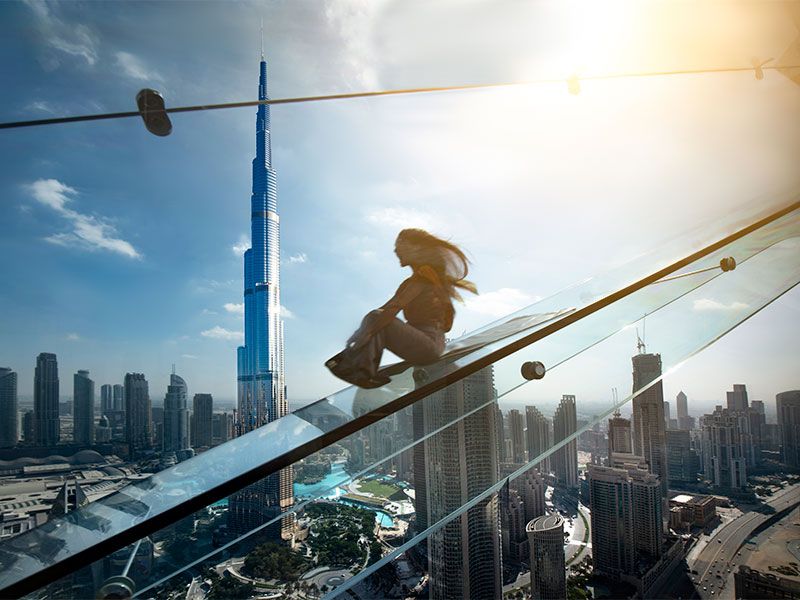 The Sky Views Observatory Deck is taking the internet by storm for all the right reasons. With its Glass slide & Sky Walk Dubai, this observatory is the perfect blend of views and adventure. This observation deck is located across the road from the Burj Khalifa and lets you take photos with the landmark in the background. If you've seen the pictures and reels on the experience here, you'd know why it makes it to the top Instagram-worthy spots in the city!