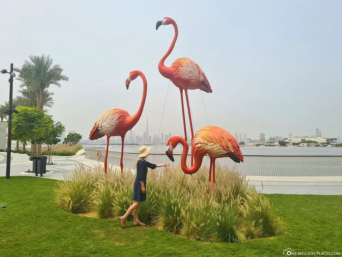 Located 10 minutes from Downtown Dubai, the iconic waterfront called The Lagoons is situated along the coast of Dubai Creek. This classic waterfront destination is a vibrant neighbourhood surrounded by green landscapes. An evening walk alongside the glittering creek and gorgeous sunset views is the perfect combination for tranquillity. Don't forget to click pictures with the flamingos!