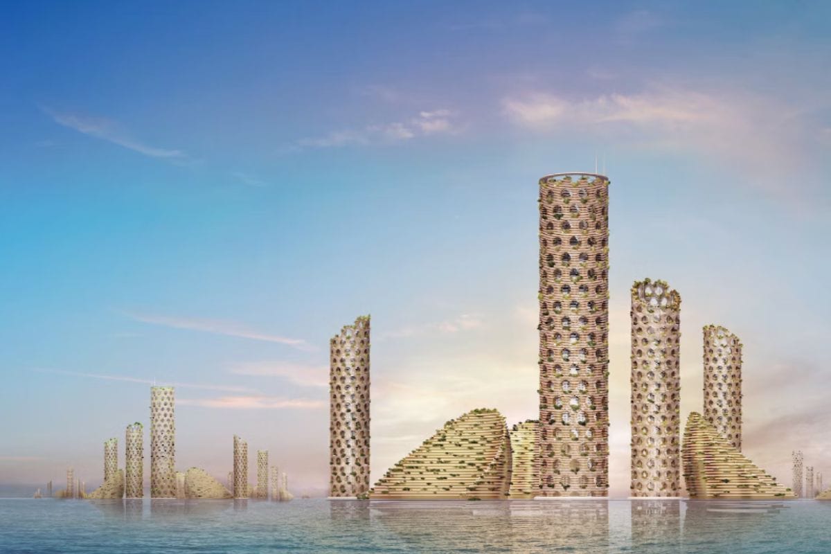 Dubai Reefs is a floating living lab aimed at restoring marine life and ecotourism. This pioneering project will also generate over 30,000 jobs in the green economy. The sustainable floating community includes residential, hospitality, retail, educational, and research facilities, with a marine institute at its core. By building an extensive artificial reef spanning 200 square kilometers, it aims to house over 1 billion corals and 100 million mangrove trees. Additionally, the project emphasizes marine ecotourism, featuring floating eco-lodges powered by 100% renewable energy, including solar and hydropower.