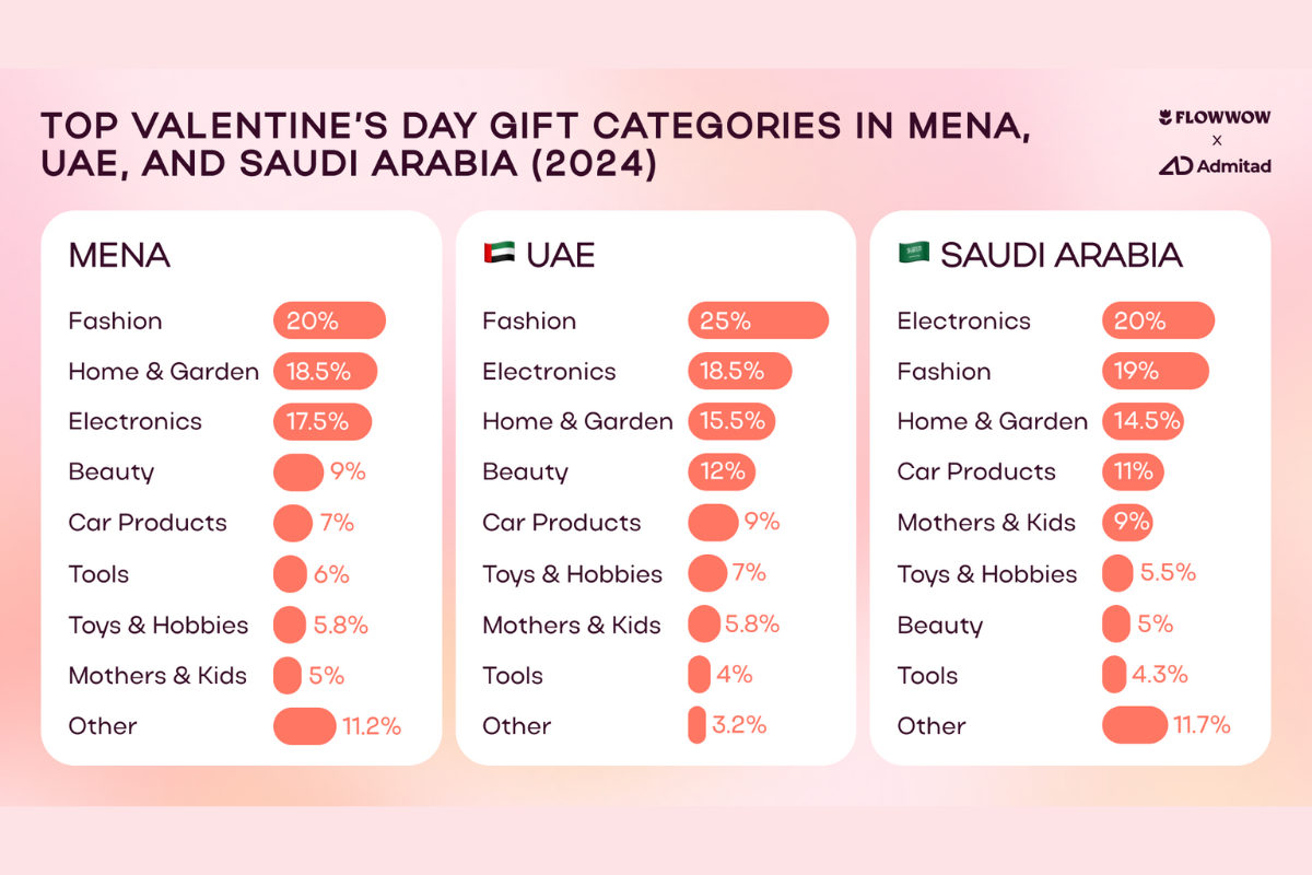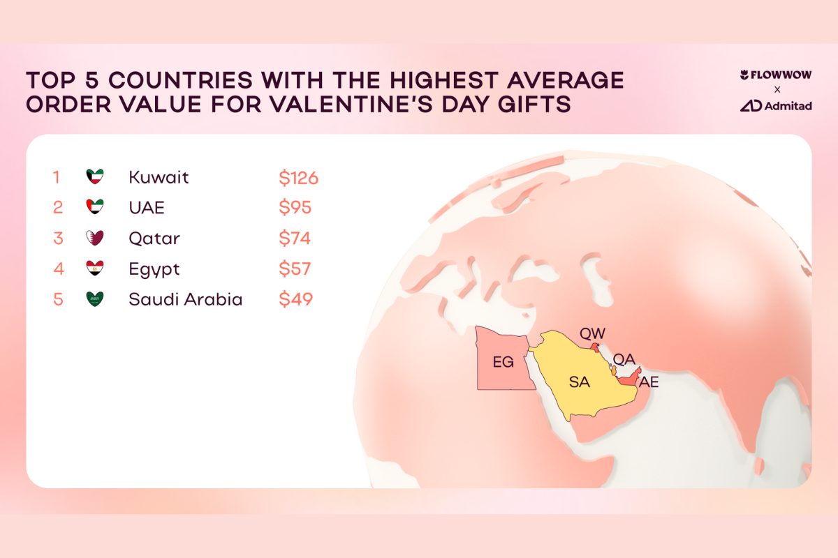 Flowwow, a UAE-based gifting marketplace, and Admitad, a partnership marketing platform, have unveiled key insights into Valentine’s Day market trends in the MENA region based on online sales data from February 12-15, 2024.