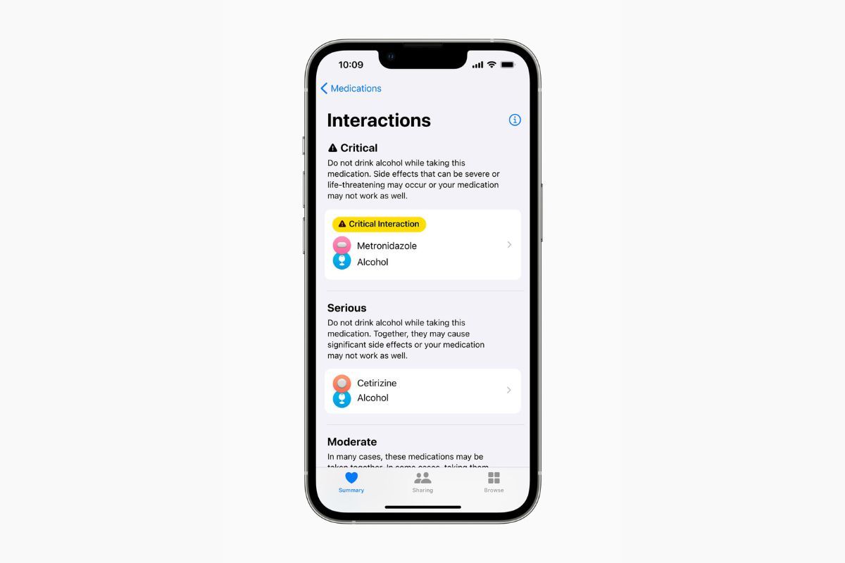 Custom schedules can be created for each medication, whether it needs to be taken multiple times a day, once a week, or as needed, and users can set up reminders to help keep them on track. In the US, users can receive an alert if there are potential critical interactions with medications they have added to the Health app.
