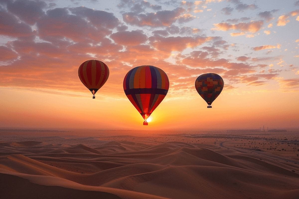 A hot air balloon ride over Dubai’s desert landscape is an extraordinary way to experience a sunset. Typically starting in the late afternoon, these rides offer a serene journey over rolling sand dunes and dramatic desert scenery. As the balloon ascends, the vastness of the desert becomes even more awe-inspiring, with golden sands stretching as far as the eye can see.
