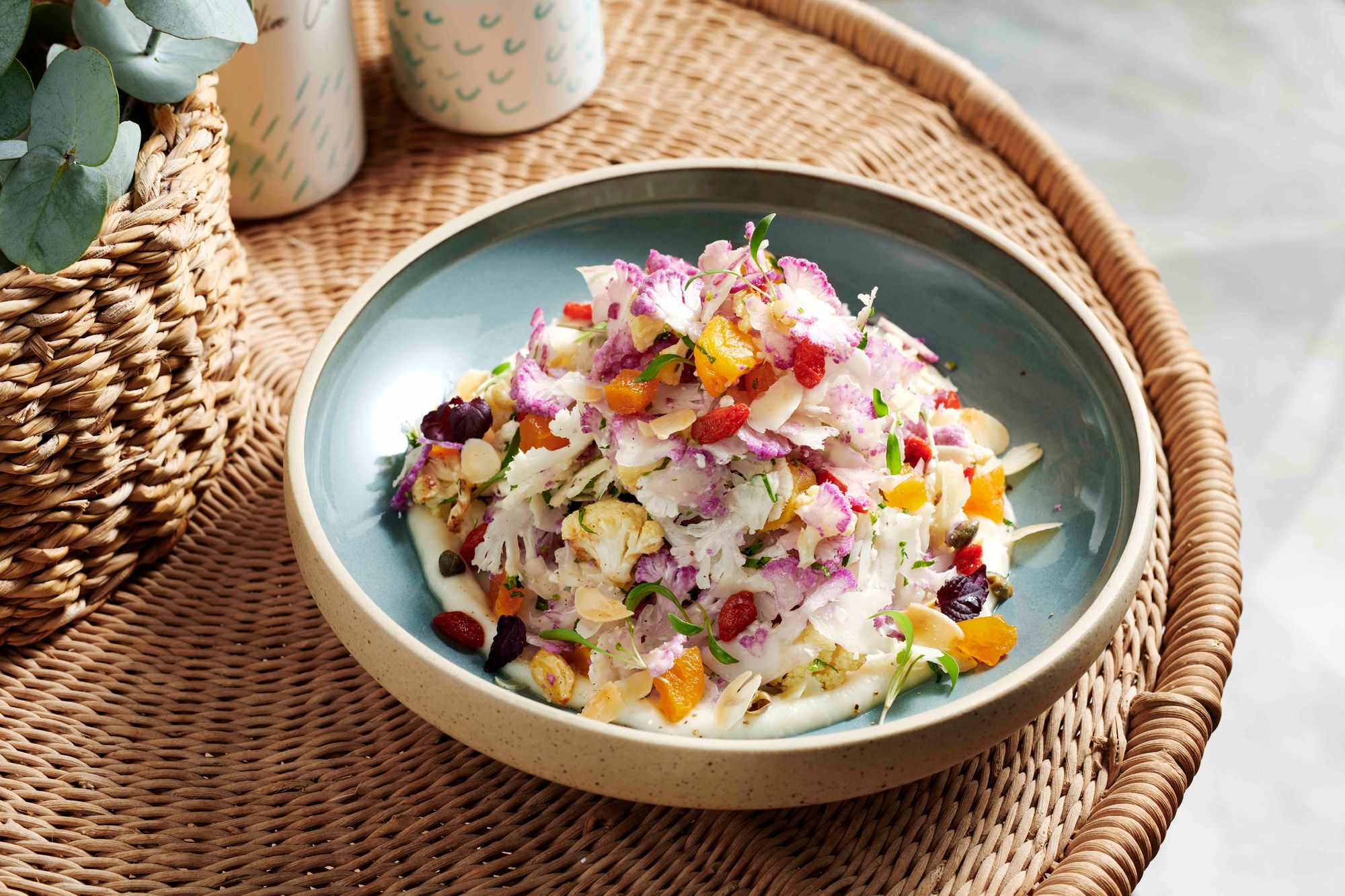 Offering panoramic views of Palm Island and the city skyline, guests will be able to enjoy Dubai’s newest restaurant every day from 12:00pm to 11:00pm. Emphasising simplicity and paying homage to Mediterranean culture, the space incorporates neutral tones and rustic light fixtures and furnishings. Wicker accents and thatched ceilings enhance the warmth of the space, making it perfect for the ultimate lunch or an evening with loved ones and friends.
