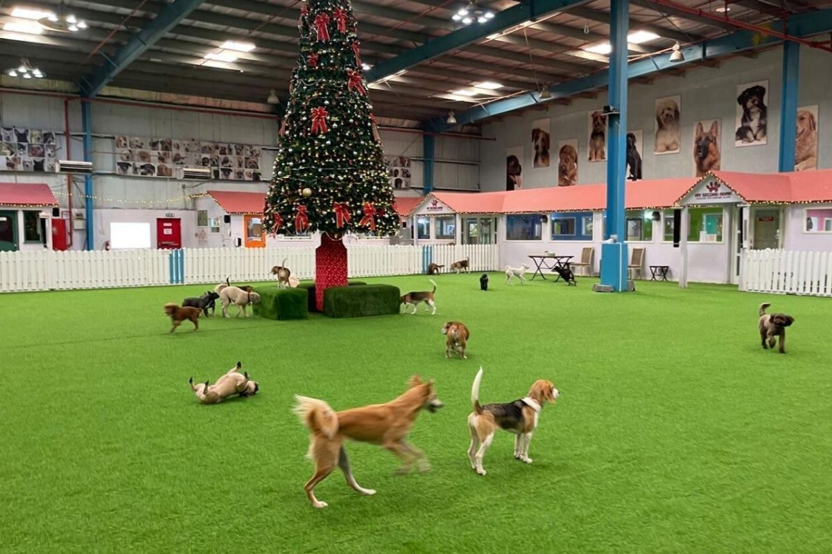 My Second Home Dog Park and Day Centre has paw-some festive decorations, including a suspended giant tree.