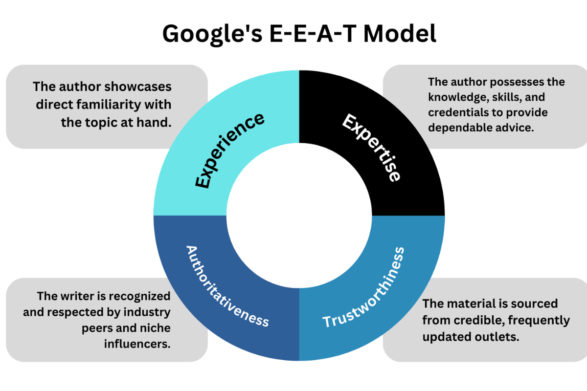 Let’s revisit E-E-A-T—Experience, Expertise, Authoritativeness, and Trustworthiness.