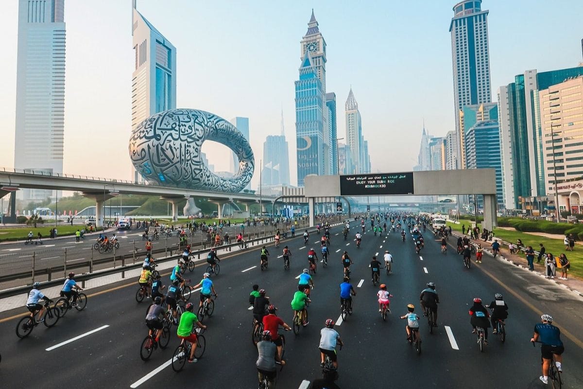 Soon enough, from September all the way to February, the city is bustling with cycling events. The most notable one of course is the Dubai Ride, which is a part of the Dubai 30x30 Fitness Challenge. This yearly event shuts down the city's main road, Sheikh Zayed Road, and allows cyclists of all ages to take a unique ride through Dubai, taking in the breeze and the views.